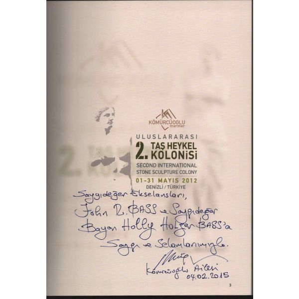 İthaf, "Saygıdeğer Ekselansları, John R. Bass ve Saygıdeğer Bayan Holly Holzer Bass´a Saygı ve Selamlarımızla. Kömürcüoğlu Ailesi 04.02. 2015" şeklindedir.