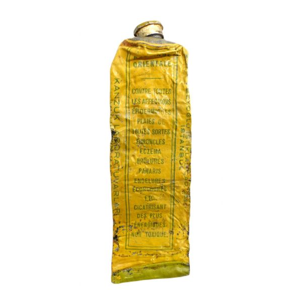 "Bilumum Yaralar, Kan Çibanları, Yaş Ekzama, Soğuk Isırması, Yanık, Panaris ve saire için ğayet müessir olub, zehirli değildir. Bütün cilt hastalıklarına karşı kullanılır." Kanzuk labaratuvarları İstanbul.