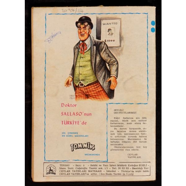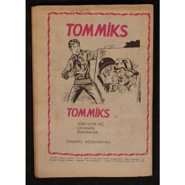 TEKSAS TOMMİKS, 10.04.2023 saat: 22:00'a kadar internet sitemizden pey verebilirsiniz. 22:02 itibariyle canlı müzayedemiz başlayacaktır. Kitap, Dergi ve süreli yayın hariç tüm ürünlerden % 20 ürün KDV'si alınmaktadır. Komisyon Oranı: % 20 + KDV'dir. ÖDEME SÜRESİ MÜZAYEDE BİTİMİNDEN SONRA 1 HAFTADIR.