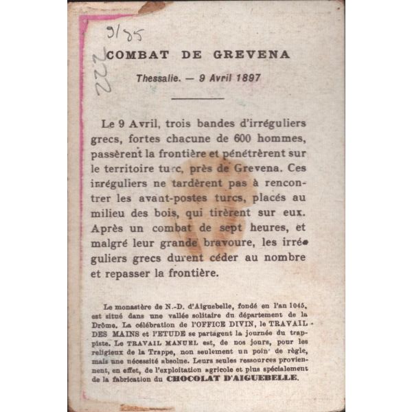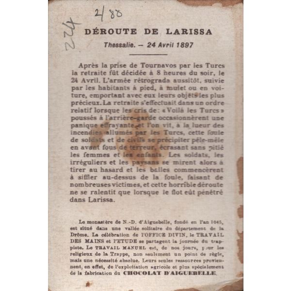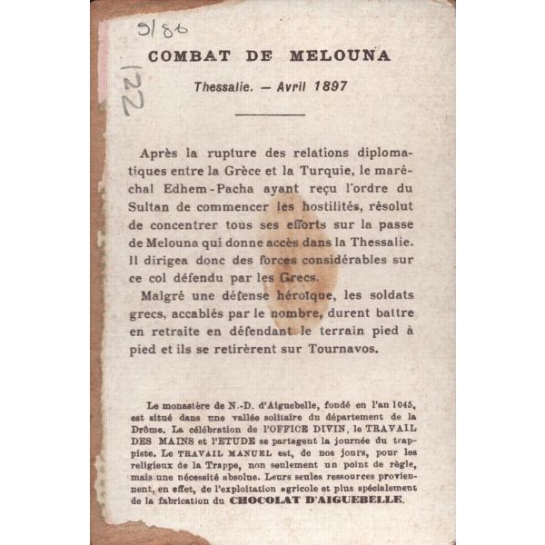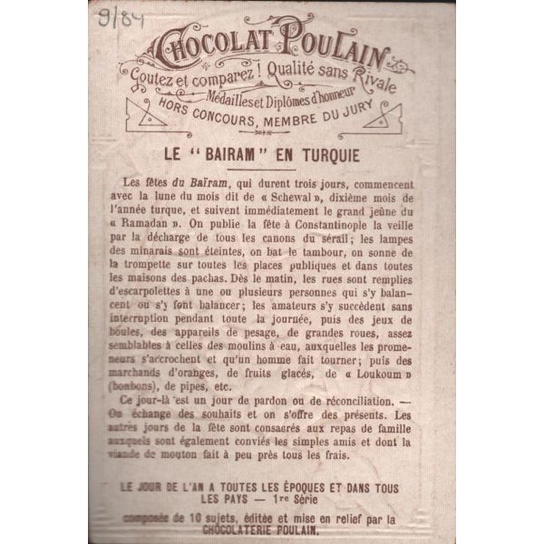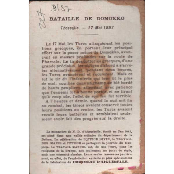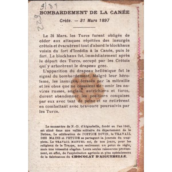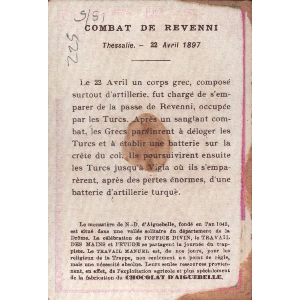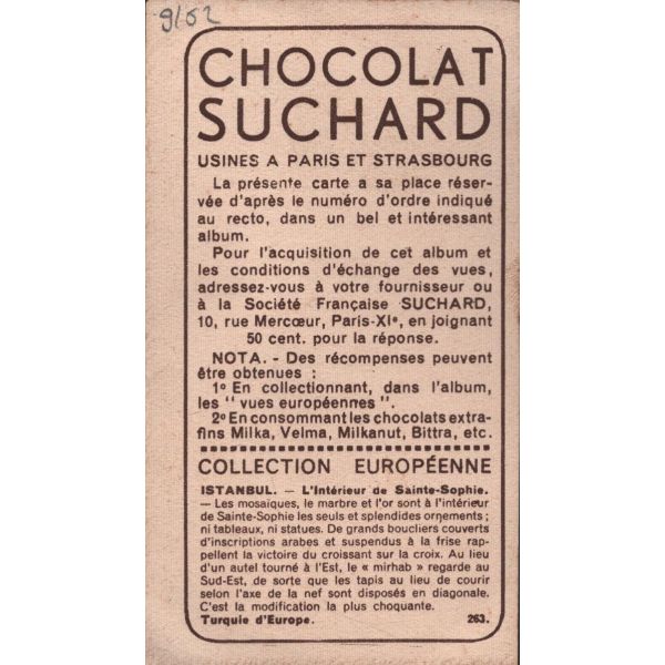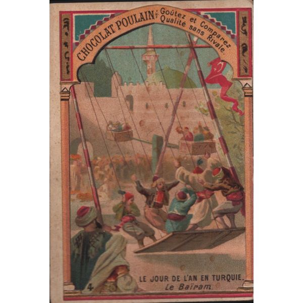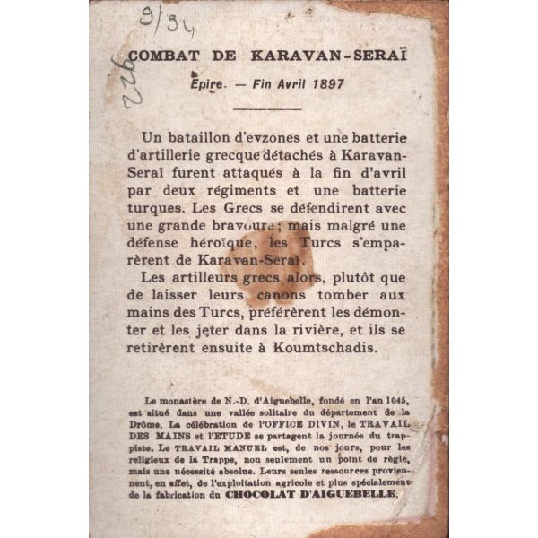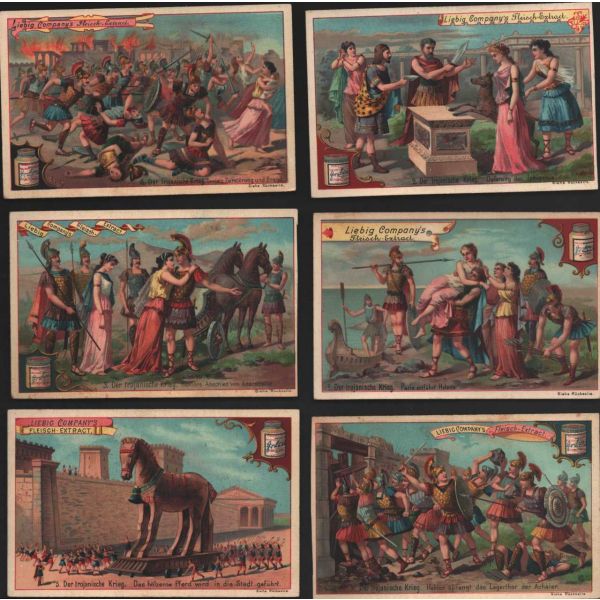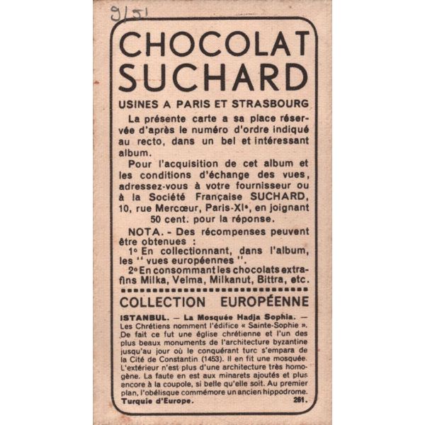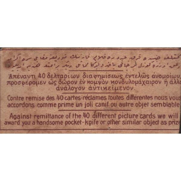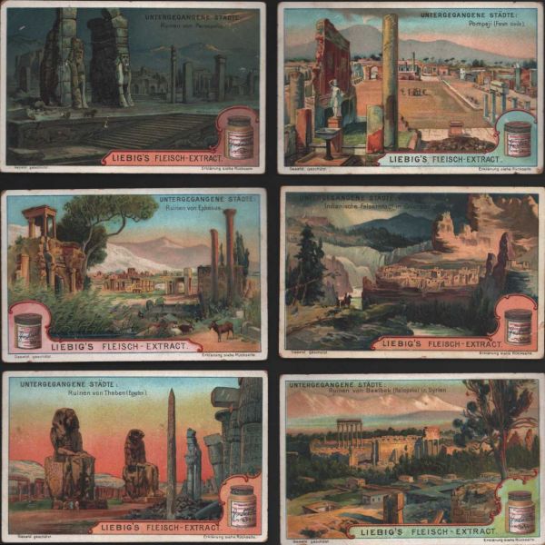 Çikolata kartlarında; Roma İmparatoru Hadrianus, Kithara çalan Apollon, Şark Eserleri Müzesi, İstanbul Arkeoloji Eserleri Müzesi, Hermaphrodite, Büyük İskender, Bir köpeğin mezar taşı, Domuz heykeli, Yılanlı sütunun başı görselleri bulunmaktadır.
