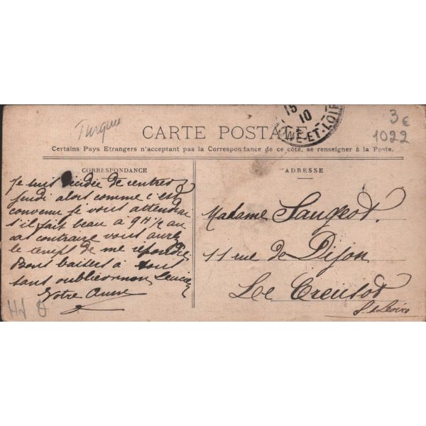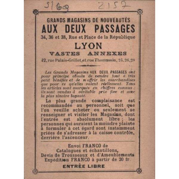 Au Bon Marche, birbirinden farklı çok sayıda ürünü bir arada satan, dönemin ilk büyük mağaza girişimidir. Kartpostallar da bu mağazadan çıkmaktadır. Bir tanesinin sağ üst köşesinde ufak bir kopuk mevcut haliyle.