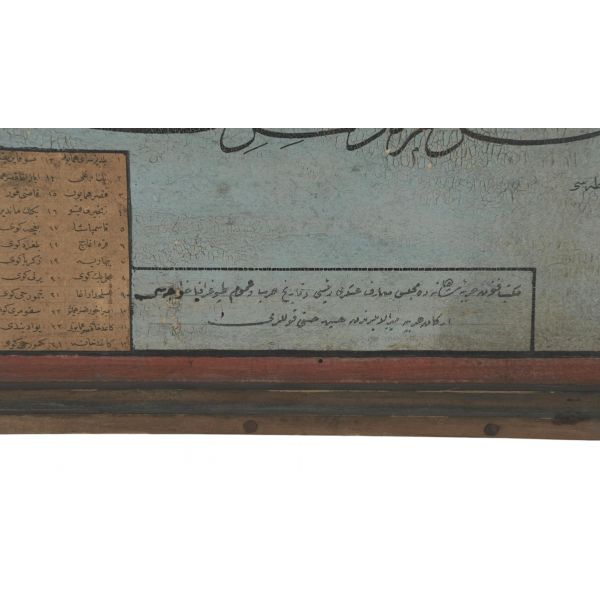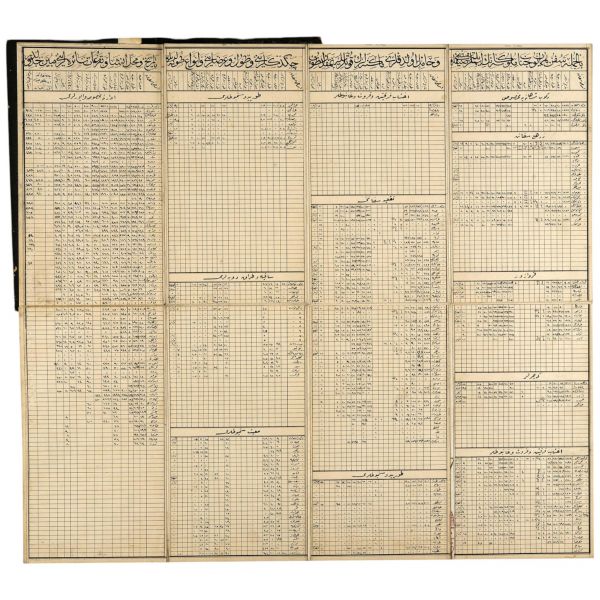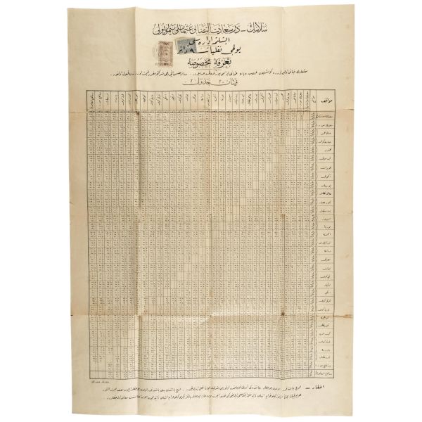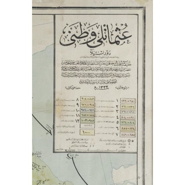 Çizelgede bir dönem Mustafa Kemal Atatürk´ün de Cumhurbaşkanlığı yatı olarak kullandığı Ertuğrul yatından başlayarak I. Dünya Savaşı sırasında Osmanlı´nın kullandığı Mesudiye, Asar-ı Tevfik zırhlıları da dâhil olmak üzere, zırhlı ve torpidoların isimleri, bunların yanı sıra halkın kullandığı 76 adet İdare-i Mahsusa vapurunun her birinin adı belirtilmiştir. Osmanlı devlet arması ve Bahriye armalı orijinal cildi içinde...