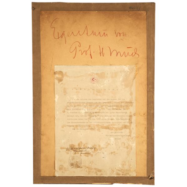 Hamburg Darülfünûn´unun ünlü hekimlerinden Doktor Hans Moha´nın; Türklere ve Türk hekimliğine olan sevgisi ve bilimsel katkılarından dolayı takdir ve teşekkürün göstergesi olarak Gülhane Tababet-i Askeriye´nin fahri hocalığı unvanının verilmesine dair belge.. Askerî Tıp Encümeni´nin 13 Mayıs 1926 tarihinde oy birliğiyle aldığı kararda Dr. Hans´a adı geçen unvan tevcih edilmiştir.