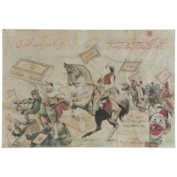 Kibar Ali Sigara Kâğıdı markasının, sigara kâğıtları pazarında elde ettiği başarı bir muharebe mizanseniyle ele alınmıştır. Şaha kalkmış atı üzerinde, Kibar Ali sigara kâğıdını muzaffer bir edayla havaya kaldıran hanımefendinin ön planda olduğu afişte, son dönem Osmanlı ve Erken Cumhuriyet dönemininin popüler sigara kâğıdı markalarından "Jöntürk" ve "Şanlı Türk" ile diğer yabancı marka sigara kâğıtlarının bu muharebeden yenik düşmüş olarak tasvir edildiği görülmektedir.