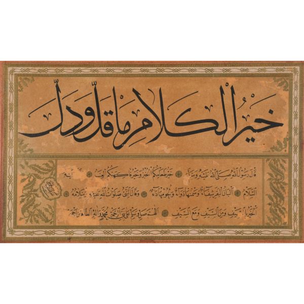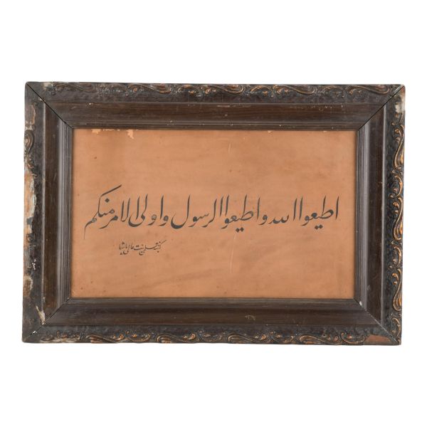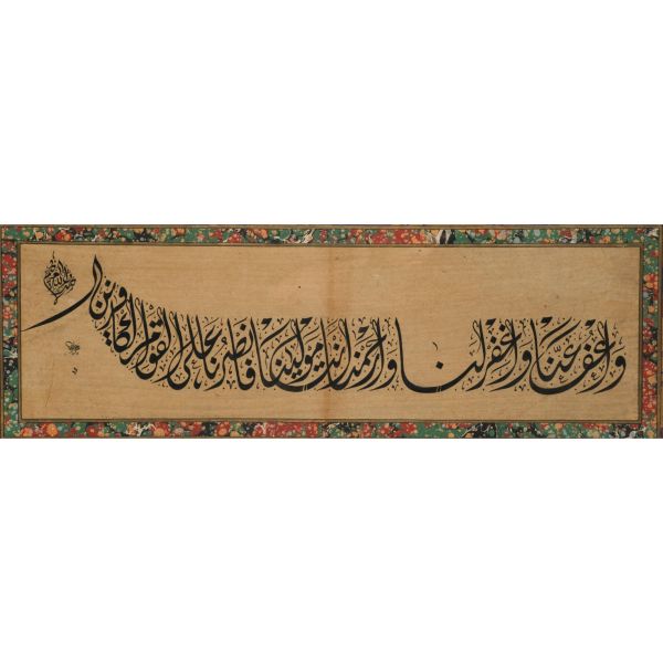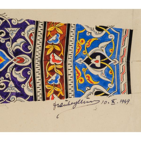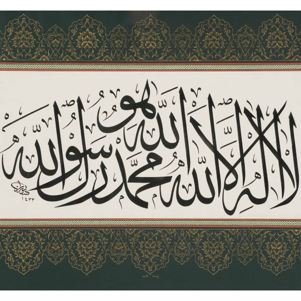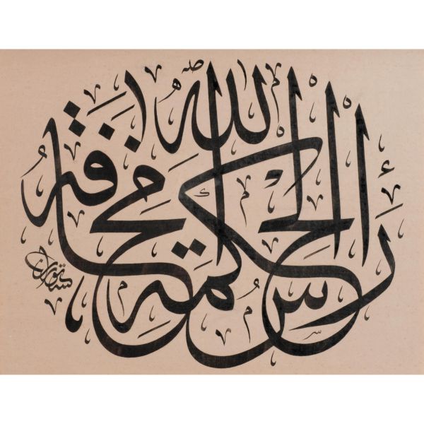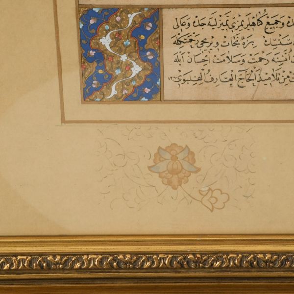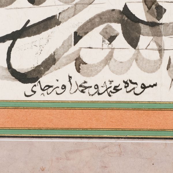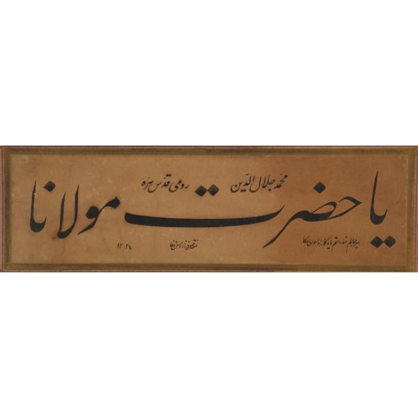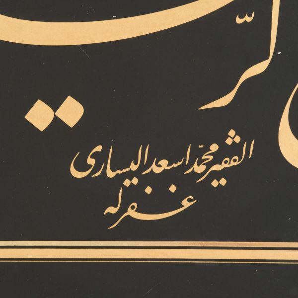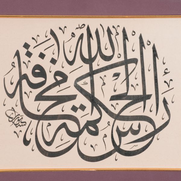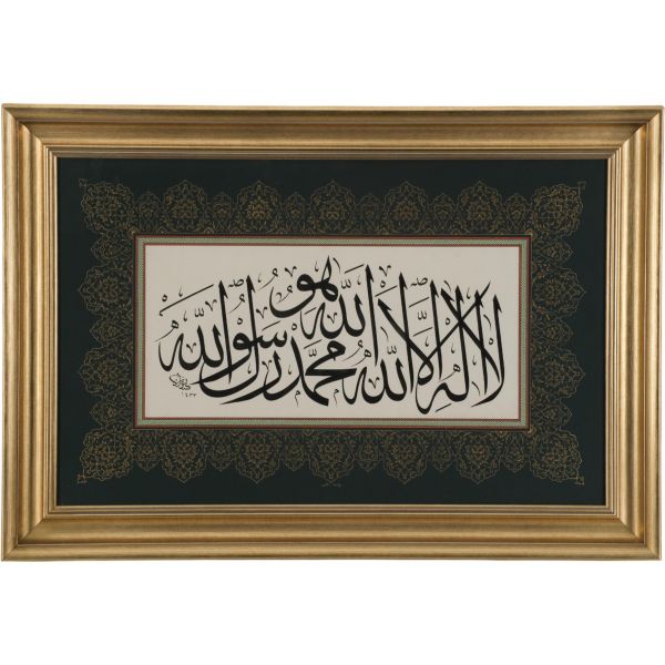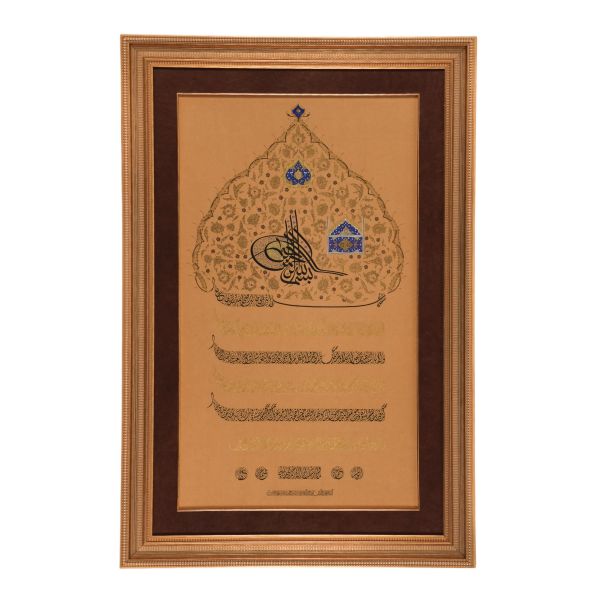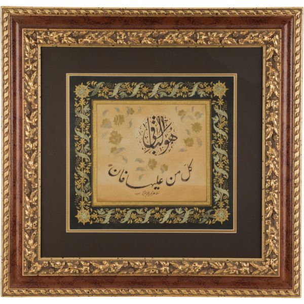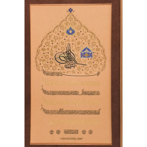 Haluk Yusuf Şehsuvaroğlu´nun Topkapı Sarayı Müzesi´ne müdür olarak atanmasına Necmeddin Okyay´ın düştüğü ve mail talik levha olarak yazdığı, Topkapı Sarayı´nda müzehhibe olarak görev yapan Mihriban Hanım´ın da tezhiplediği levha: