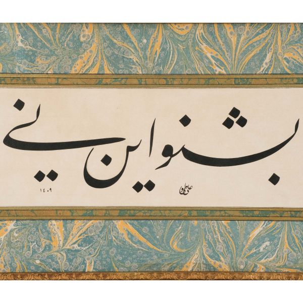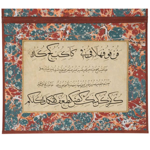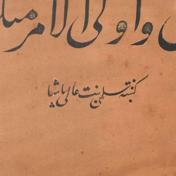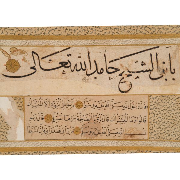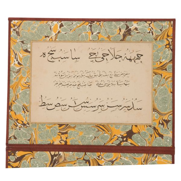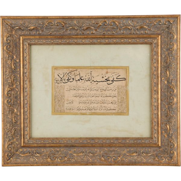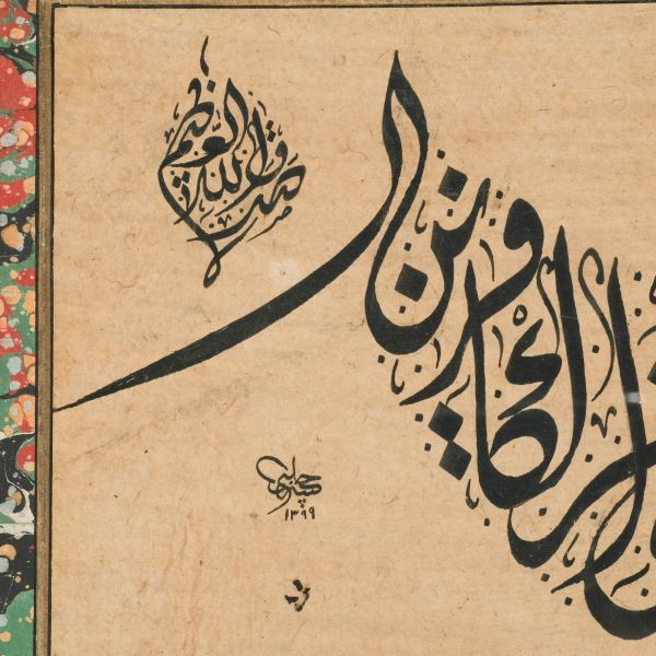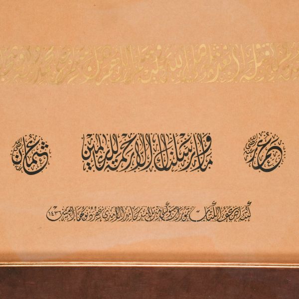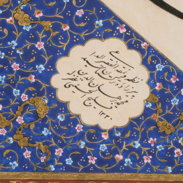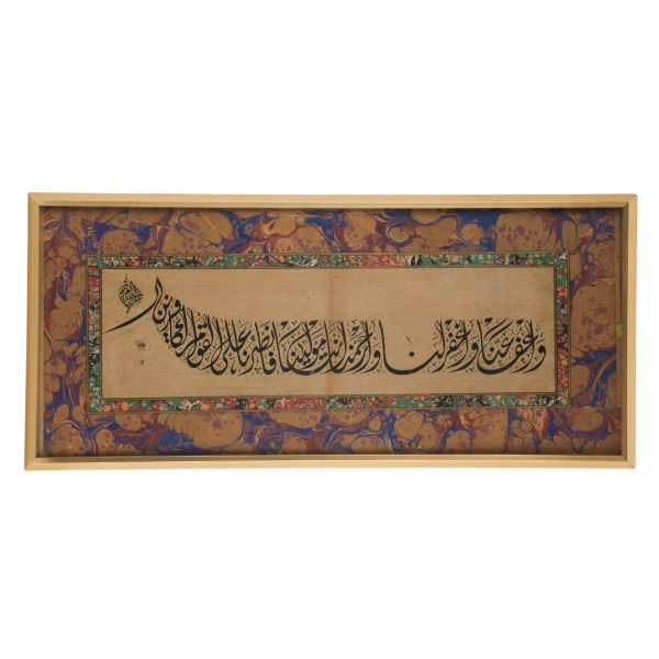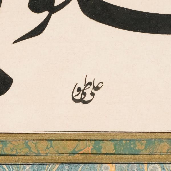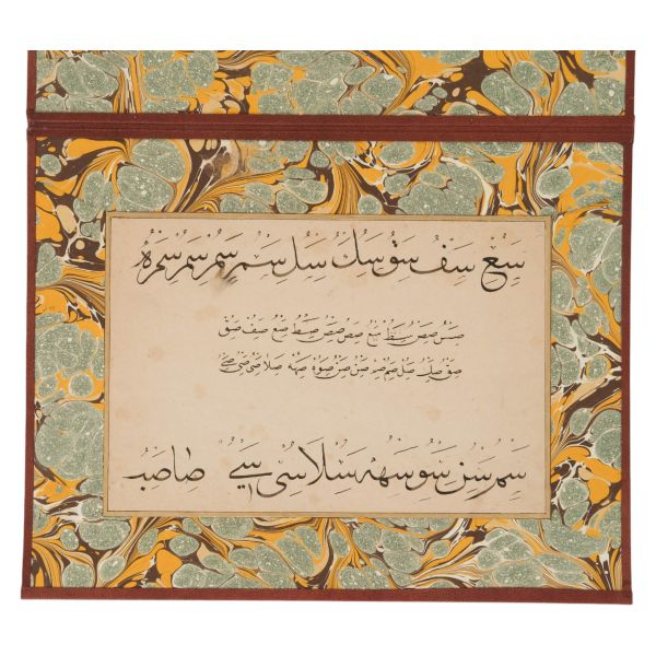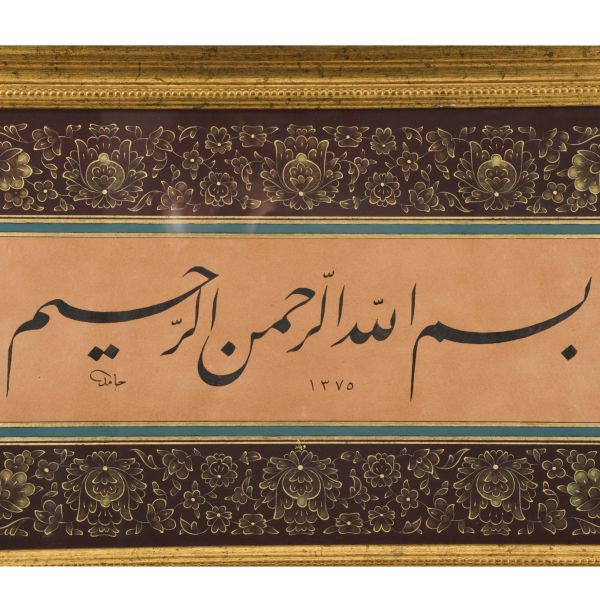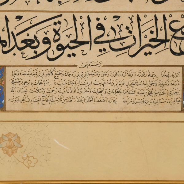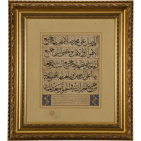 Haluk Yusuf Şehsuvaroğlu´nun Topkapı Sarayı Müzesi´ne müdür olarak atanmasına Necmeddin Okyay´ın düştüğü ve mail talik levha olarak yazdığı, Topkapı Sarayı´nda müzehhibe olarak görev yapan Mihriban Hanım´ın da tezhiplediği levha: