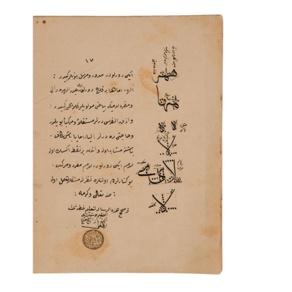 Der-Aliyye´de Südlüce´de esbak sadr-ı azam Sokollu merhum Gazi Şehid Mehmed Paşa hafidi Esseyyid Abdülkerim Cevdet Paşa Hazretlerine vusul bula ber vech-i