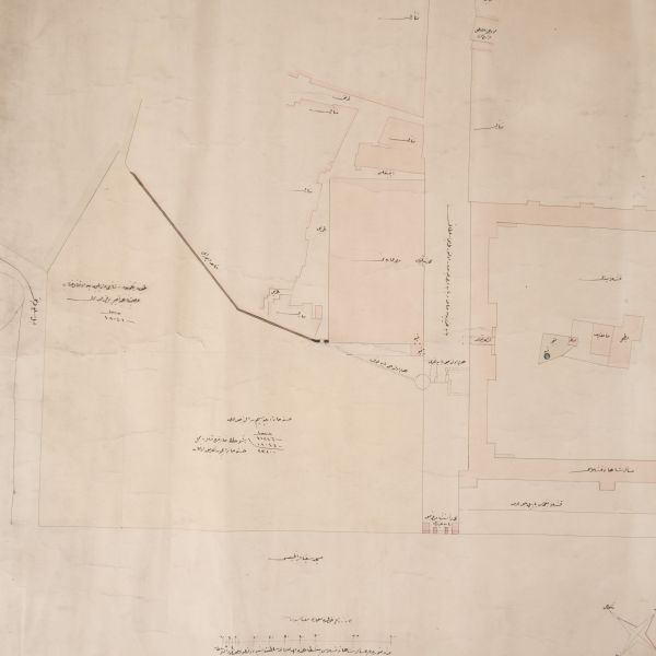 "Medine-i Münevvere´de Asâkir-i Şâhâne pîşegâhında mehd-i ulyâ-yı saltanat-ı seniyye devletlü ismetlü Vâlide Sultan aliyyetühü´ş-şân efendimiz hazretlerinin inşâsına ferman buyurdukları hastahane ebniye-i hayriyesinin arsası Emlâk-i Şâhâne´den olup vakf-ı ismetpenâhiye tashih olunmak üzere tanzim kılınan bir kıta harîta-i mevkiiyesidir
