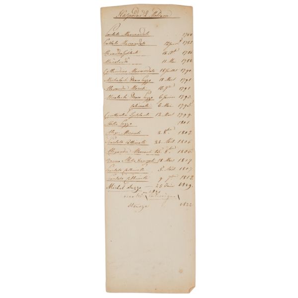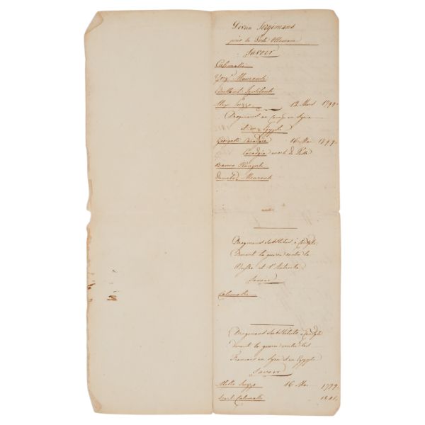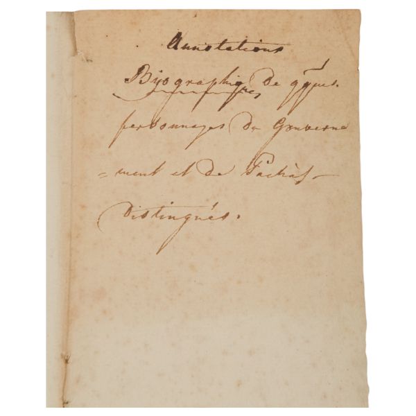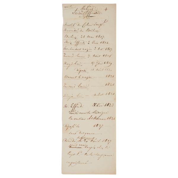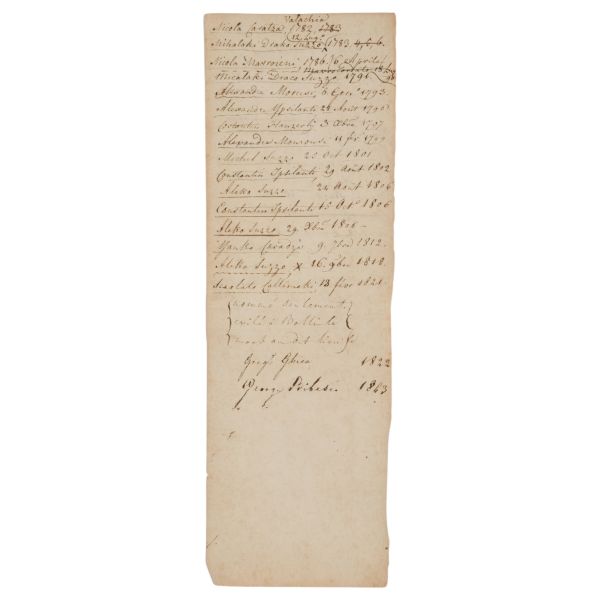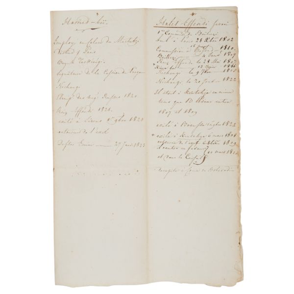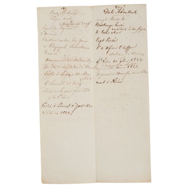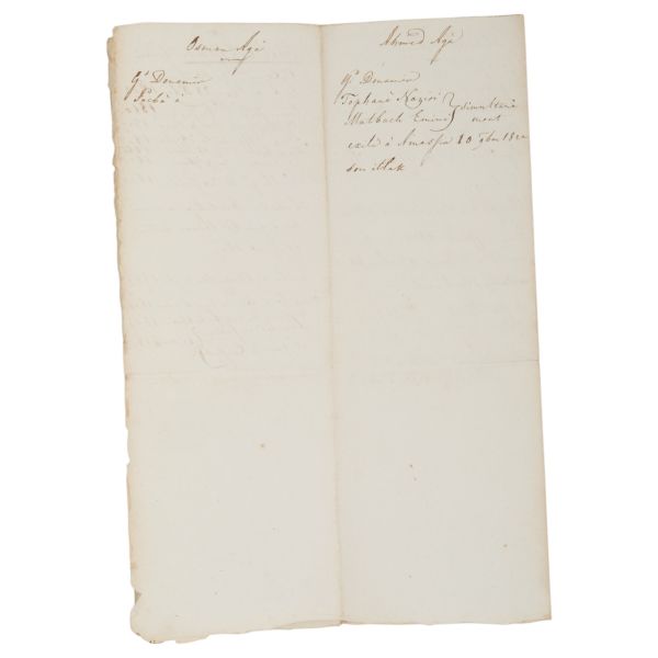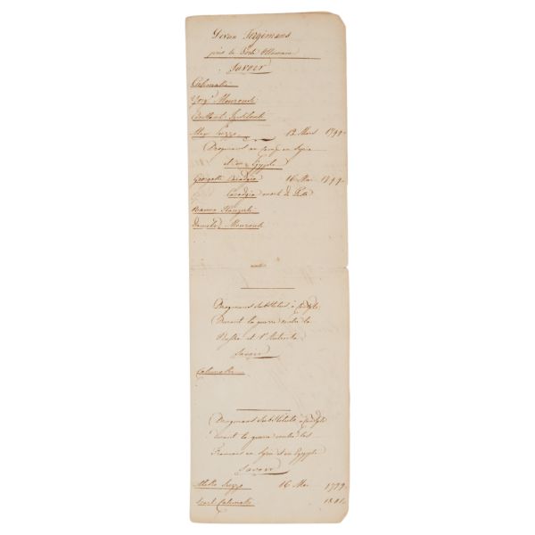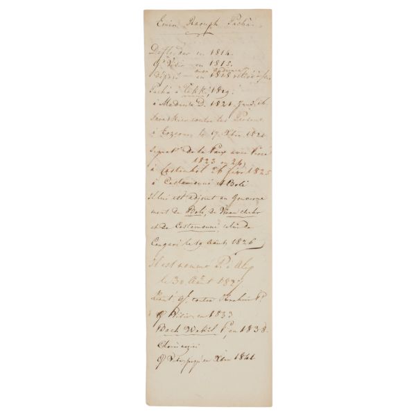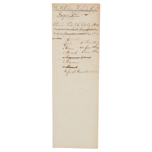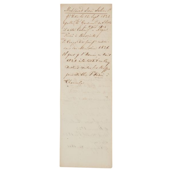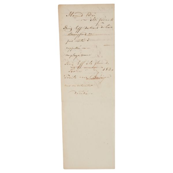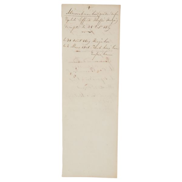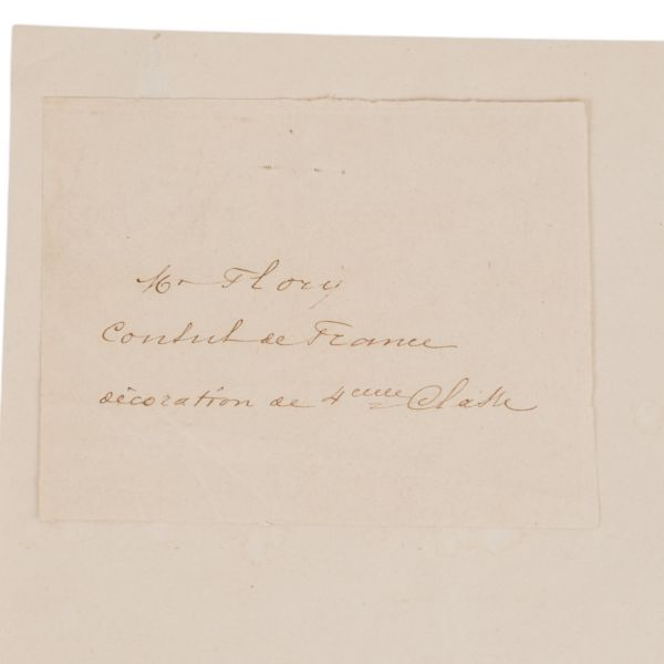 Beratın arka yüzüne iliştirilen Fransızca notta: