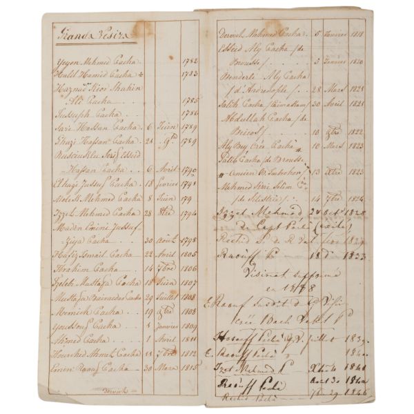 Tabloda Sadrazam´dan başlayarak, Kaymakam, Kaptan Paşa, Reis Efendi, Defterdar, Çavuşbaşı, Tophane Nazırı, Mutfak Emini, Gümrük Emini, Topçubaşı, Mektupçu Efendi, Hekimbaşı, Rumeli Kazaskeri, Anadolu Kazaskeri, Şeyhülislam, Galata Mollası, Kızlar Ağası, Kahvecibaşı, Berberbaşı ve Şehremini gibi ünvanlar listelenmiş ve bu görevlerde bulunan isimler göreve başlama ve bitirme tarihlerinin bilgisi verilerek listelenmiştir.