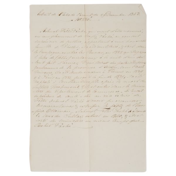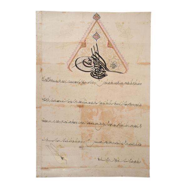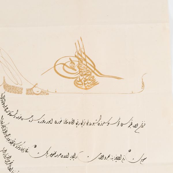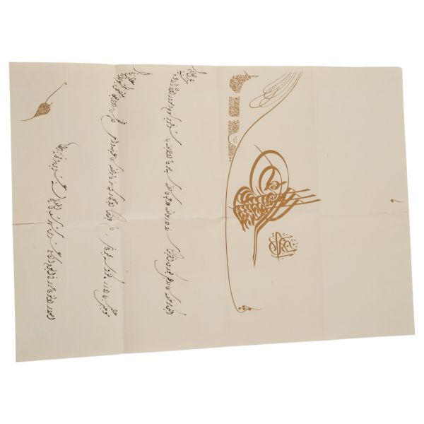 Sultan Abdülmecid tarafından Fransız elçisi M. Flory´ye verilen 4. derece Mecidî nişanının altın tuğralı beratı...
