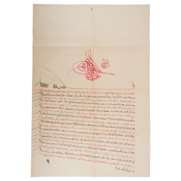 1. Kevork Arslanyan´ın Elazığ Ermeni Murahhaslığına vekil tayin edildiğine dair el çekme Sultan İkinci Abdülhamid tuğralı ferman, 1327, 82x56 cm...