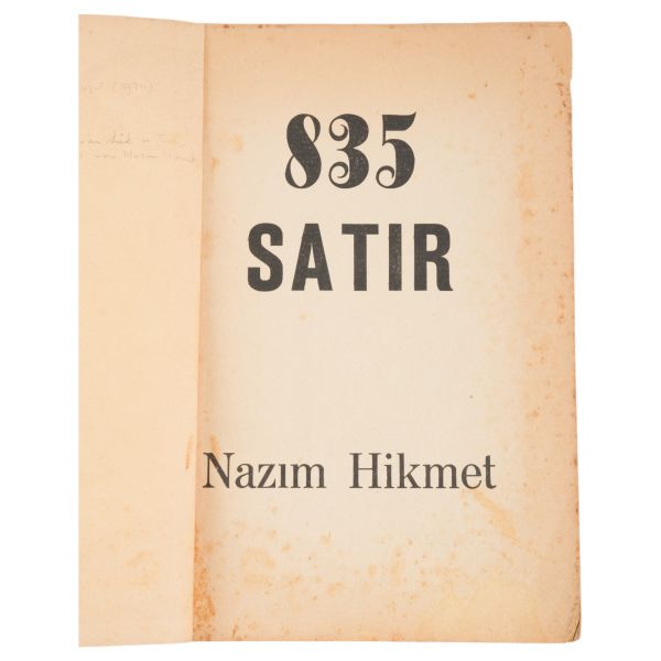 Nazım Hikmet´in, Türkiye´nin sanat ve edebiyat camiasında âdeta bir bomba etkisi yaratan eseri... Muhtemelen kendisinin haberi olmadan ve isimsiz olarak yayımlanan Dağların Havası sayılmazsa, 835 Satır, Nazım Hikmet´in Türkiye´de ve Latin harfleriyle yayımlanmış ilk kitabıdır.