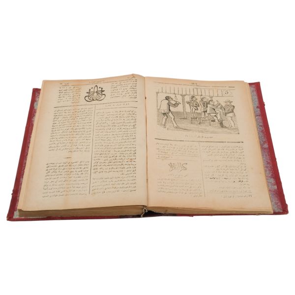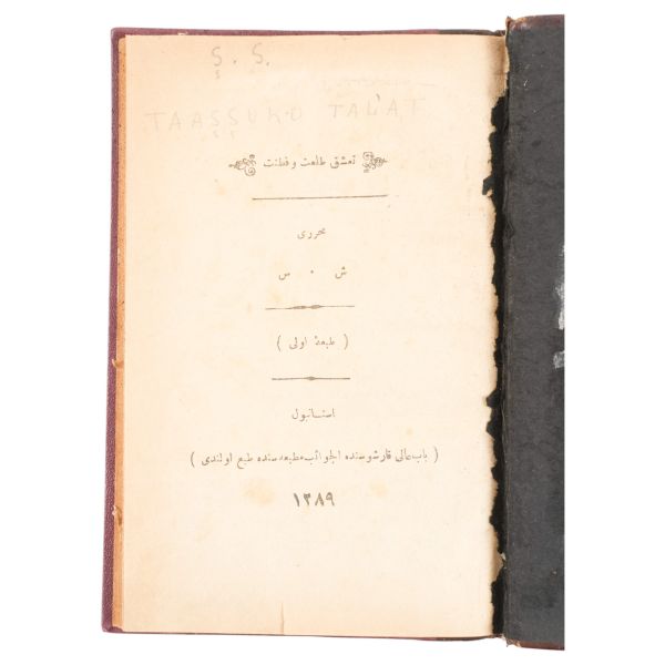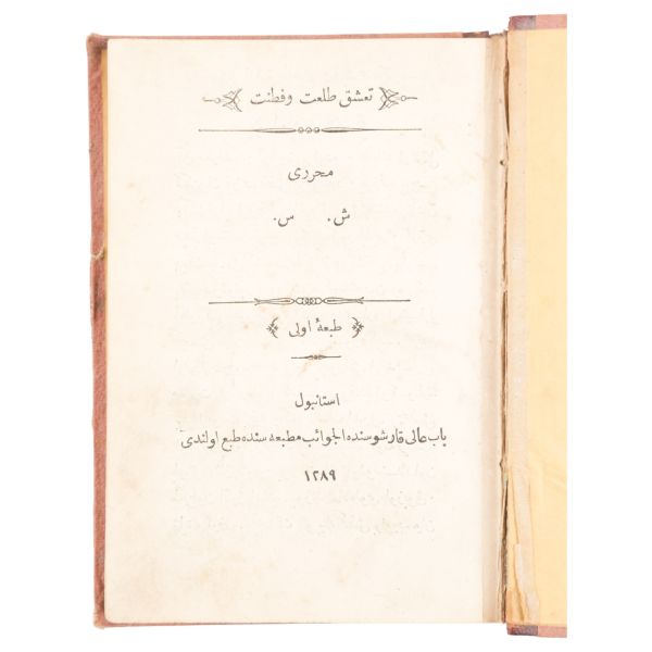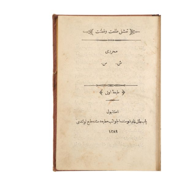 Türk edebiyatında roman türünde telif edilmiş ilk eser olma özelliği taşıyan Taaşşuk-ı Talat ve Fitnat, ilk olarak 1872 - 1873 yıllarında Hadika gazetesinde tefrika edilmiş, 1875 yılında da kitap halinde yayımlanmıştır. Döneminde çok sayıda korsan basımı da yapılan eserin, müzayedemizde sunduğumuz bu iki nüshası da ünlü El-Cevaib Matbaası'nda ve aynı tarihte basılmış olduğu halde, gerek sayfa sayısı ve gerekse boyutları açısından birbirinden farklı özellikler taşıyor. Herhangi bir nüshası son derece nadir bulunan eserin iki farklı nüshası bir arada...