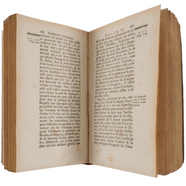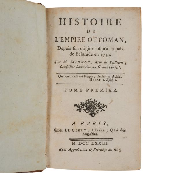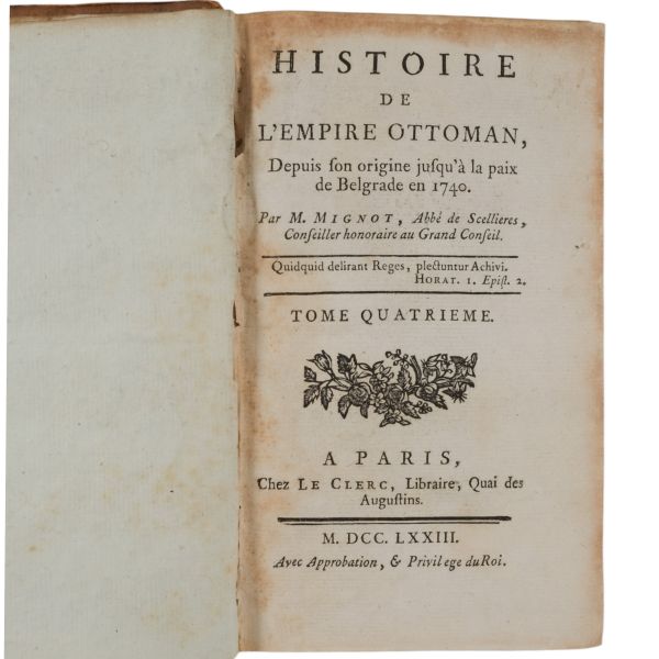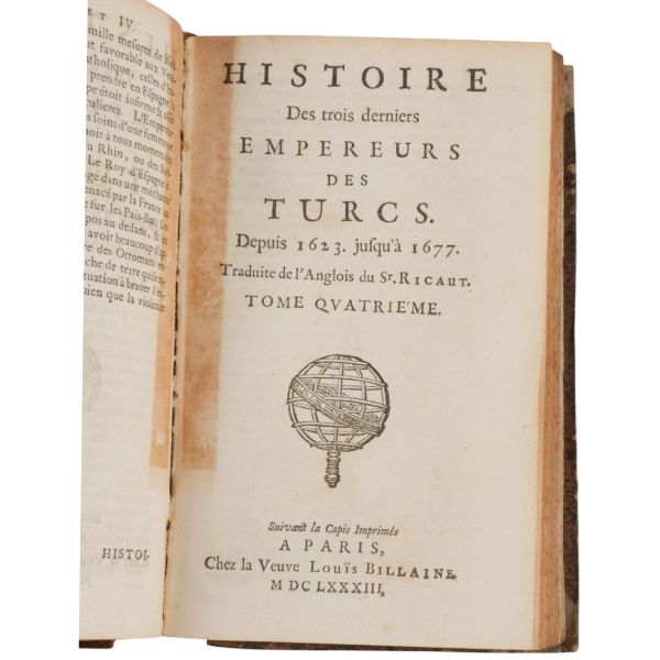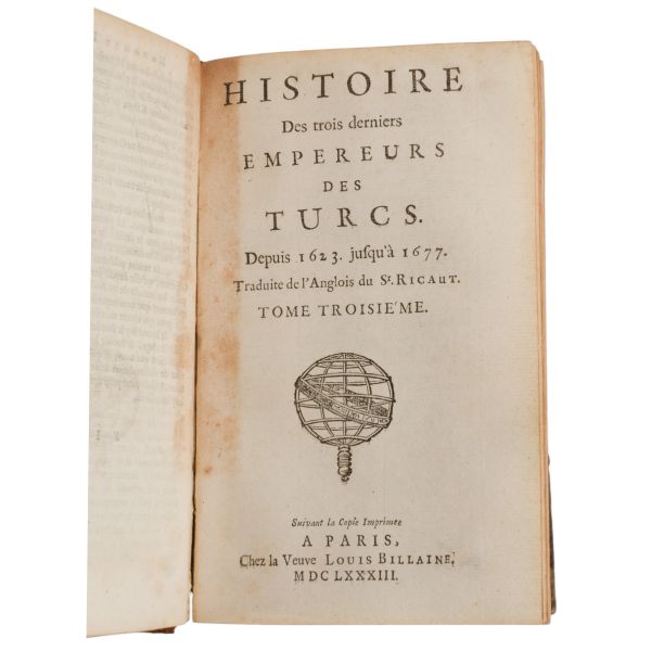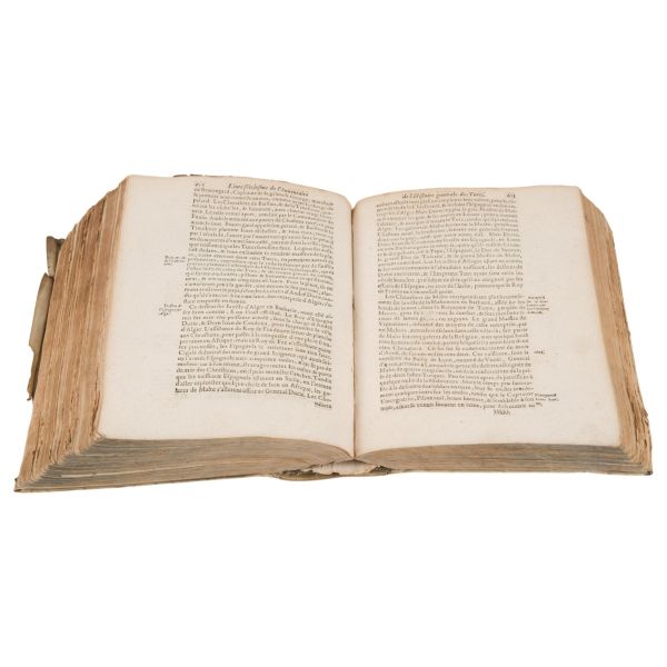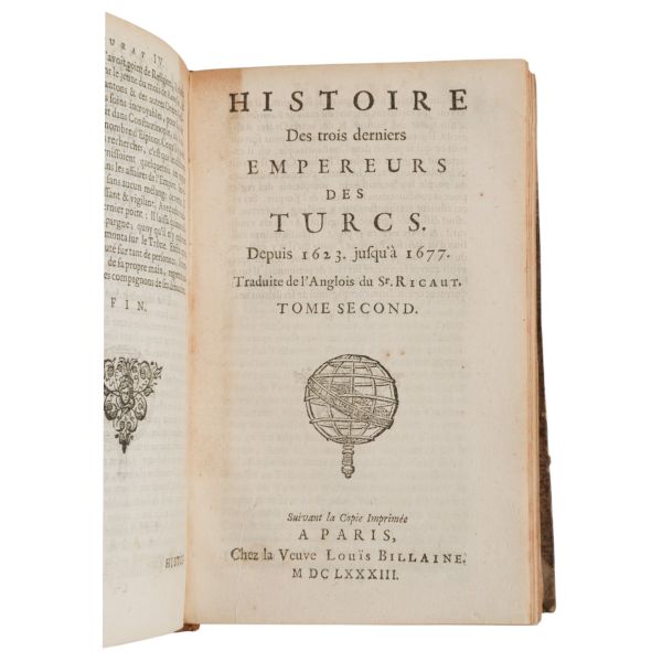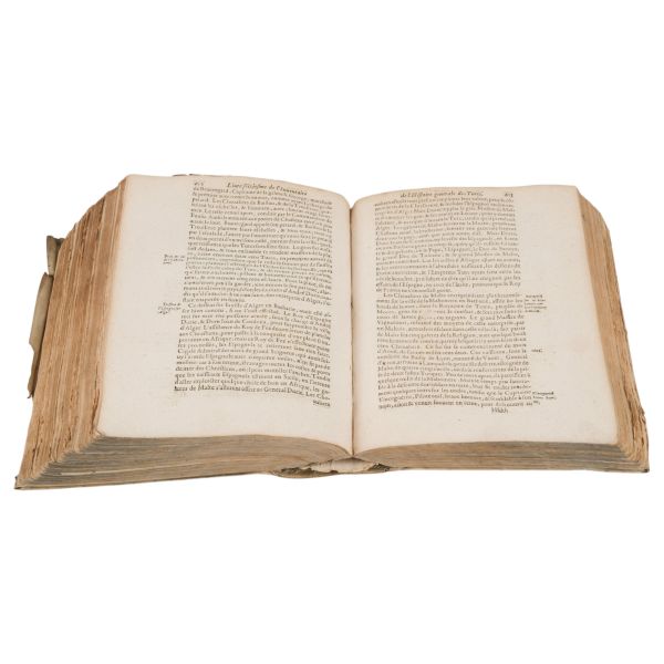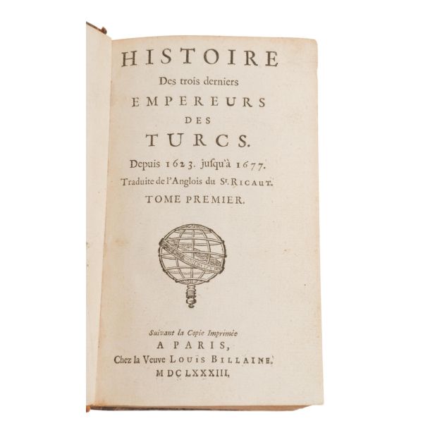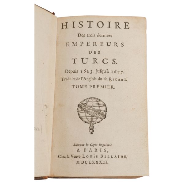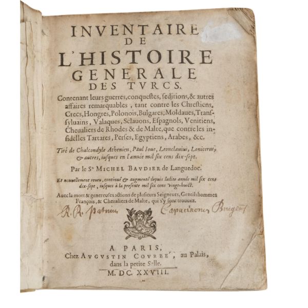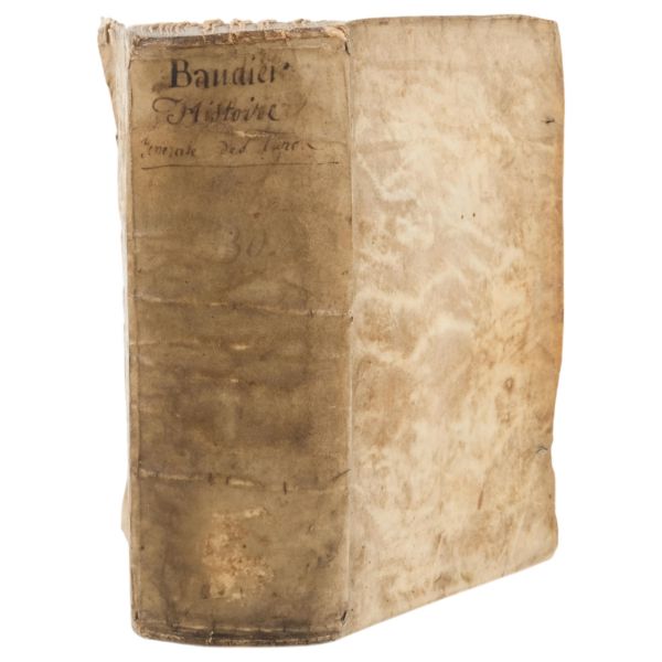 Türklere karşı özel bir ilgisi olan Fransız tarihçi Michel Baudier´in (1589-1645), Bizanslı yazar L. Chalkondyles ile Paul Jove, Leon Clavius, Lonicerus ve başka isimlerden derlediği, 1300´den 1617´ye kadarki Osmanlı tarihi... Döneminin vellum cildi içinde...