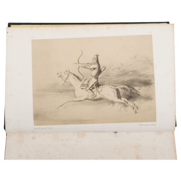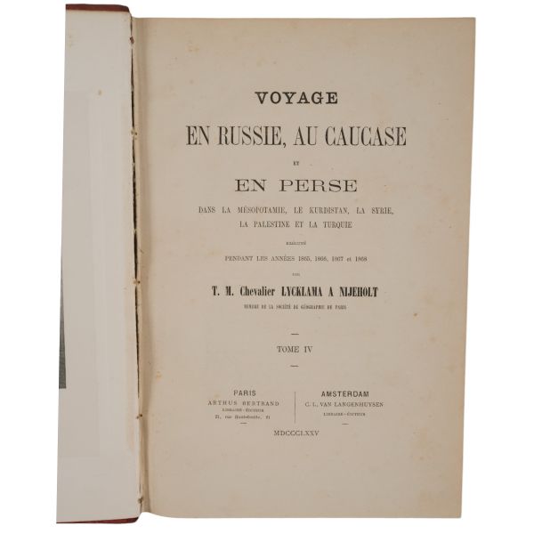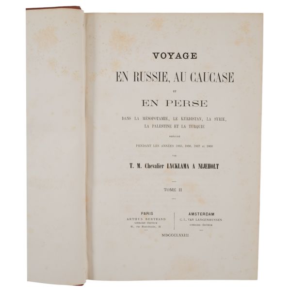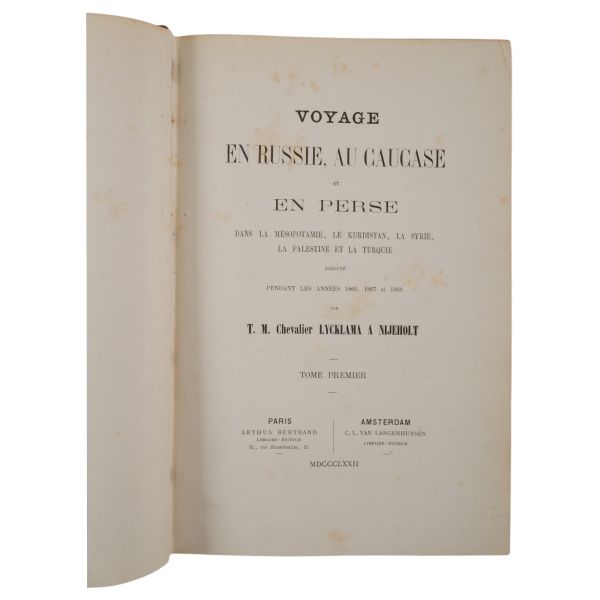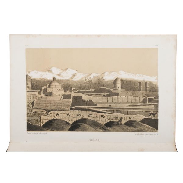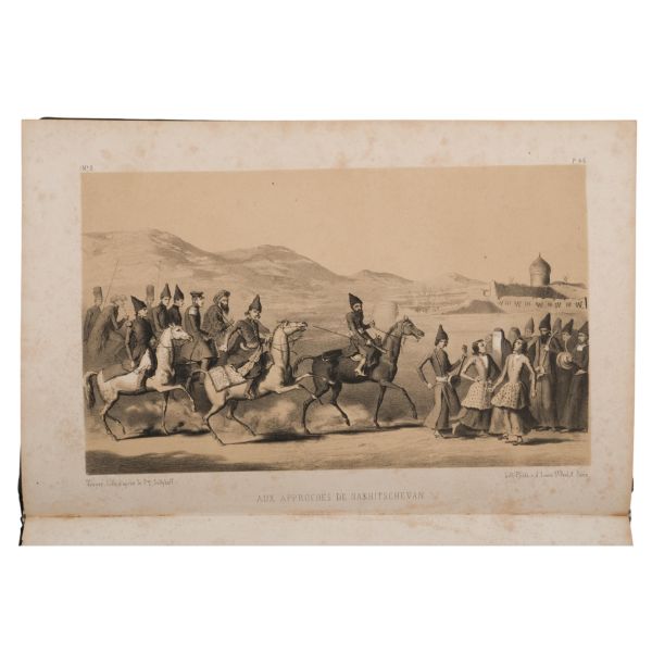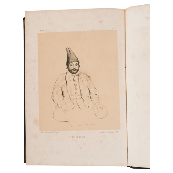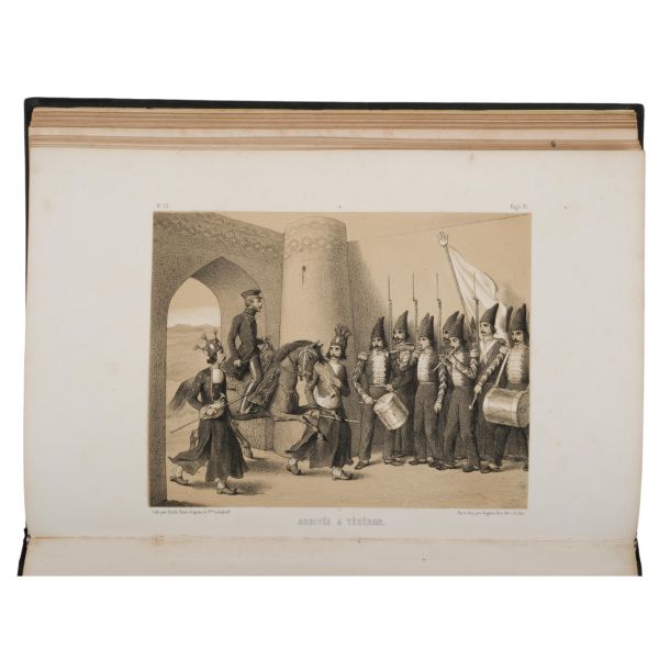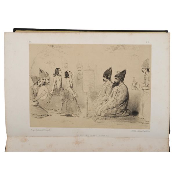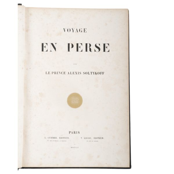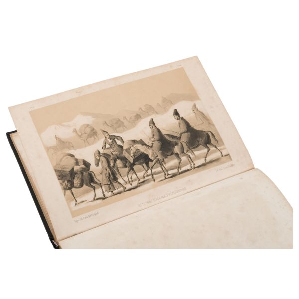 St. Petersburg´u ziyaret eden Pers elçisi Abdül Hasan Han´ın; filler eşliğinde hareket eden heybetli muhafızları, görkemli at arabası ve elmaslarla süslü beyaz kaşmir kumaştan göz kamaştırıcı kostümüyle geçisini seyreden ve bu geçiş merasiminden oldukça etkilenerek Asya´ya, özellikle İran´a gitmek için büyük bir arzu duyan Rus ressam ve gezgin Alexey Saltykov´un (1806–1859) İran seyahatnamesi... Prens Nikolay Saltykov´un torunu olan Alexey´in anlatımına 20 adet çelik baskı gravür eşlik ediyor. Şark usulü tezyinli ve oryantal figürlü, görkemli orijinal cildinde... Sayfa kenarları altın yaldızlıdır.