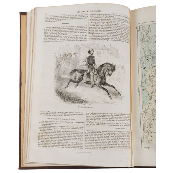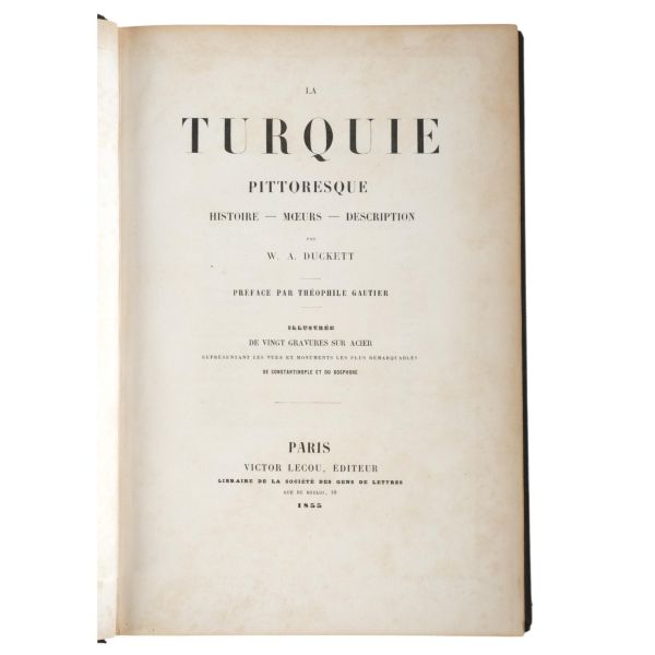 İki ana bölüme ayrılan kitabın ilk bölümünde, Osmanlı Devleti´nin kuruluşundan kitabın yayınlandığı dönem sürmekte olan Kırım Harbi´ne kadarki Osmanlı tarihi ana hatlarıyla okurlara sunulmuş; ikinci bölümündeyse Osmanlı Devleti´nin coğrafyası, ekonomisi ve demografik yapısı tanıtıldıktan sonra, imparatorluğun göz bebeği İstanbul´a geniş bir yer ayrılmıştır. Parnasizmin kurucusu ünlü Fransız şair Theophile Gautier´in önsözünü kaleme aldığı kitapta, İstanbul´un kendine has renkli yaşamını ve Boğaz´ın eşsiz manzaralarını yansıtan, çelik baskı 20 adet gravür yer alıyor. Şark usulü tezyinli ve oryantal figür dekorlu, görkemli orijinal cildinde... Sayfa kenarları altın yaldızlıdır.