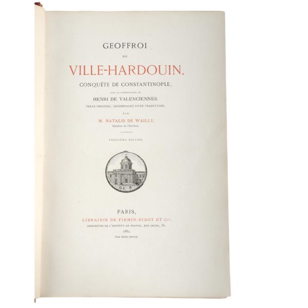 Dönemin ve olayların tanığı iki tarihçinin, Geoffroi de Villehardouin ile Henri de Valenciennes´in (Valencialı Henry), Konstinopolis´in Dördüncü Haçlı Seferi için yola çıkan Haçlılar tarafından istila ve talan edilmesini tüm detaylarıyla anlattıkları eserlerinin 1882 tarihli Fransızca baskısı... Ebru desenli ve altın yaldız süslemeli yeni cildinde.