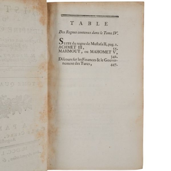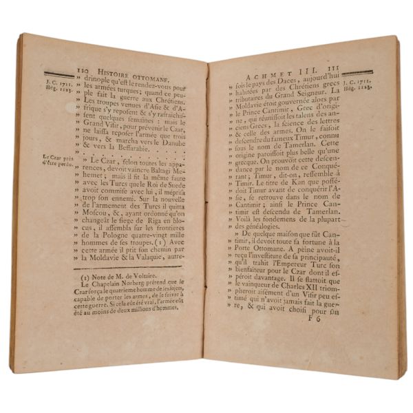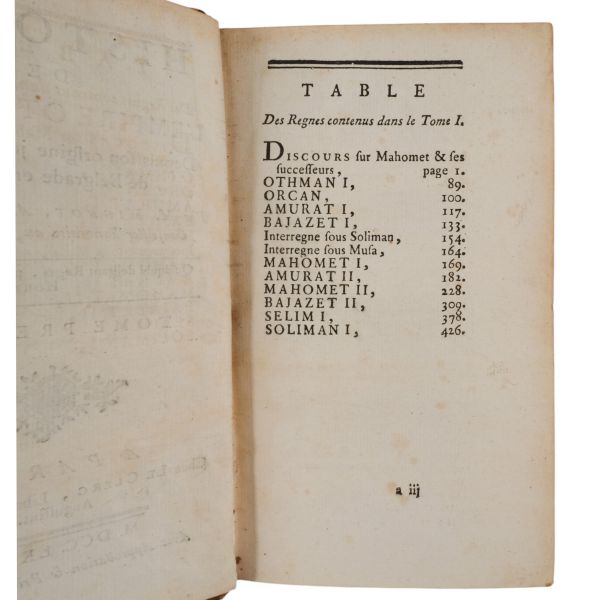 Osmanlı İmparatorluğunun kuruluşundan 1740 yılındaki Belgrad antlaşmasına kadarki tarihini konu alan eser; devletin kuruluş devrini, yükselişini ve klasik çağını, Avrupalı güçlerle ve Rusya ile mücadelesini, son olarak da 17 ve 18. yüzyıllarda devletin geçirdiği değişimleri ayrıntılı olarak anlatıyor. Eserin yazarı, ünlü Fransız filozof Voltaire'in yeğenidir.