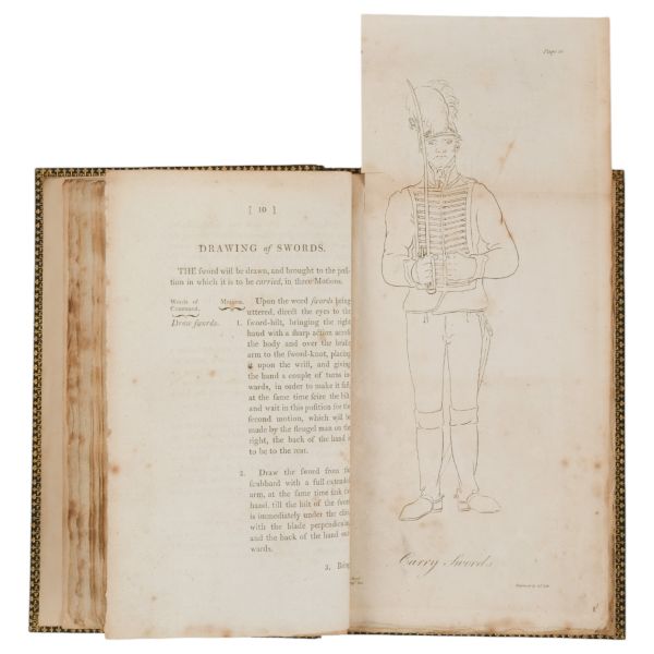 İngiliz Savaş Ofisi (War Office) tarafından Britanya süvari birlikleri için basılan atlı kılıç talimnamesi... Dönemin askerî ihtiyaçlarına göre hazırlanan ve uzun yıllar temel eğitim kaynağı olarak kullanılan kitapta kılıç türleri, kılıç taşıma ve kullanımına ilişkin her türlü açıklamaya ve çok sayıda katlanır levhalar halinde bakır baskı çizimlere yer verilmiştir. Dönemin fevkalade şık ve özenli, exlibrisli deri cildi içinde...