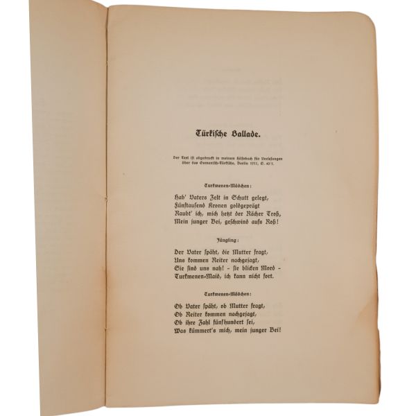 Alman şarkiyatçı ve edebiyat tarihçisi Georg Jacob tarafından 1900’lerin başlarında yayımlanan bu kitap, Türk şiiri başta olmak üzere; Arap, Fars ve diğer Doğu edebiyatlarından seçilmiş şiirlerin tercümelerini ve aynı zamanda onların tarihsel bağlamını, edebi özelliklerini ve kültürel arka planını konu alıyor. Eserde, Türk edebiyatının divan şiiri, tasavvufi şiir, halk edebiyatı dönemlerinden şiirlere yer verilmiştir.