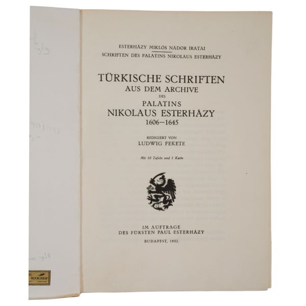 Macar soylularından Nikolaus Esterházy’nin arşivinde yer alan evraklar hakkında Macar tarihçi ve nümismat Ludwig Fekete tarafından hazırlanmış bir arşiv çalışmasıdır.
