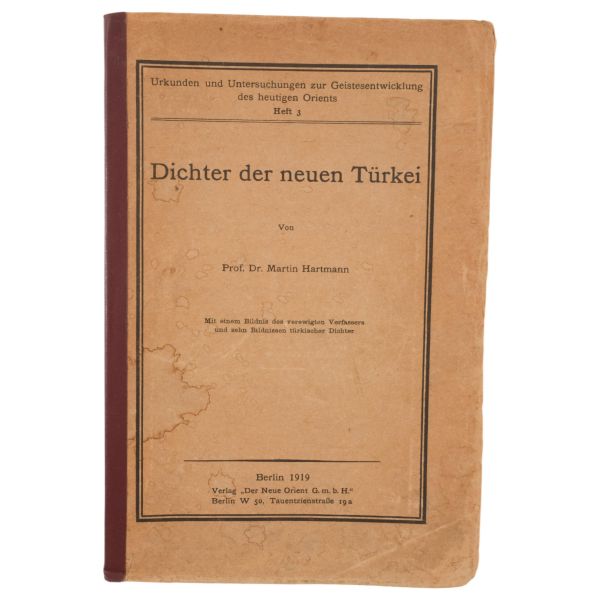 Alman şarkiyatçı Martin Hartmann tarafından kaleme alınmış "Dichter der neuen Türkei" (Yeni Türkiye’nin Şairleri), Tanzimat’tan itibaren Osmanlı´da başlayan edebi ve kültürel dönüşüm sürecinde ortaya çıkan yeni kuşağın şairlerini Alman kamuoyuna tanıtmayı amaçlıyor. Hartmann, eserinde dönemin önde gelen Osmanlı-Türk şairlerinden Abdülhak Hamit, Cenap Şehabettin, Halit Fahri, Fazıl Ahmet, Süleyman Nazif, Nigar Hanım gibi şairlerin şiirlerinden alıntılar yaparak onların Batı etkisiyle değişen şiir anlayışlarına dair değerlendirmelerde bulunuyor.