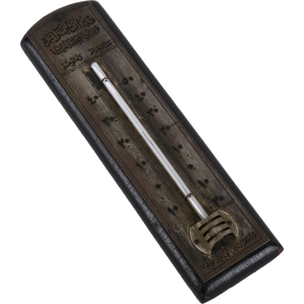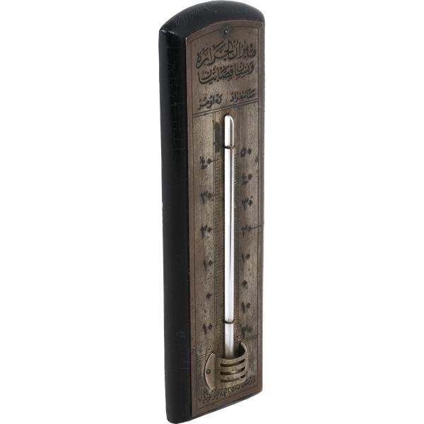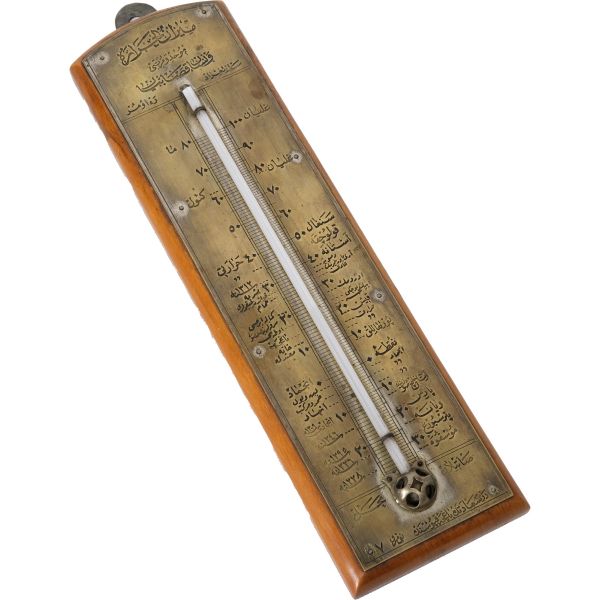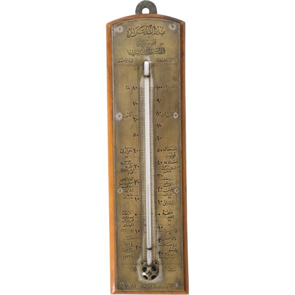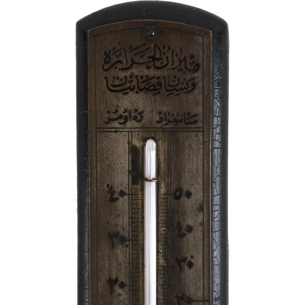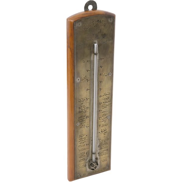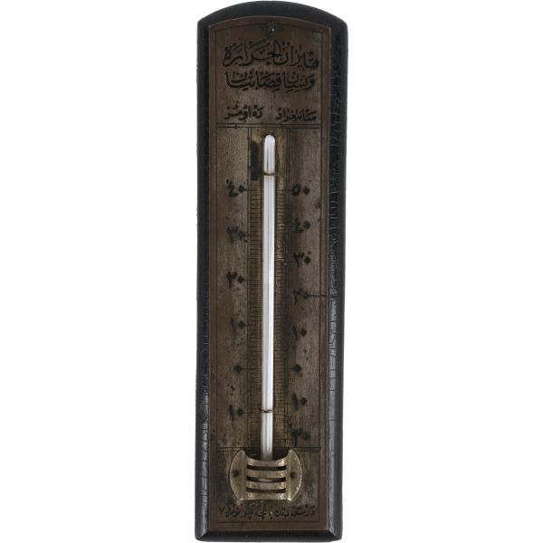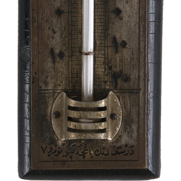 Termometrenin kadranında yer alan derecelerin hizasına hangi şehrin ortalama sıcaklık değerine yakın olduğu yazılmıştır. En alt satırda "Satılan mahal Dersaâdet´te, Bağçekapısı´nda numero 7" yazılıdır.