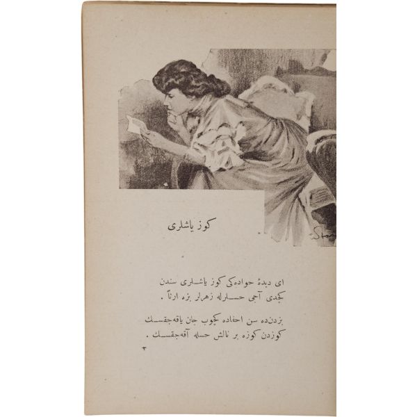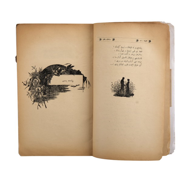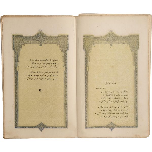 Servet-i Fünûn edebiyatının önde gelen şairlerinden Hüseyin Suad´ın, "resim altı şiir" akımına uygun olarak desenlerle süslenmiş şiirleri... "Münir Bey biraderime 22 Haziran sene 326, Hüseyin Suad"