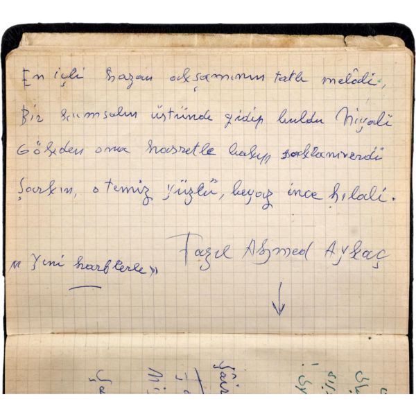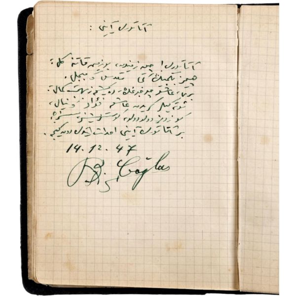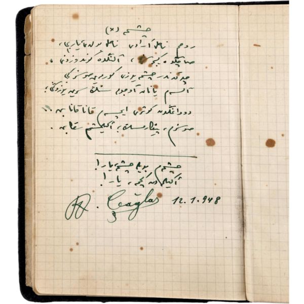 Dönemin önde gelen şairlerinin el yazılarıyla şiirlerini yazdığı bu küçük defterin sahibi hakkında, ne yazık ki kesin bir bilgiye sahip değiliz. Ancak ithaflardan birine bakılırsa defter sahibinin "Cemile" adında bir hanım olma ihtimali var. Bazı şiirlerin bugün bilinen biçimlerinden farklılık gösterdiği bu küçük derlemede Necip Fazıl'ın iki, Cahit Sıtkı'nın iki, Fazıl Ahmet'in dört, Behçet kemal Çağların altı, diğer şairlerin ise birer şiiri vardır. Defterin arka sayfasında ise İspanya İç Savaşı ile ilgili iki sayfalık İspanyolca bir metin bulunuyor.