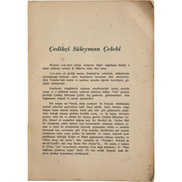 Beş Hececilerin en etkili şairlerinden biri olan Enis Behiç Koryürek´in tasavvufi şiirleri... Şair bu şiirleri, hiçbir kaynakta adına rastlanmayan, 18. yüzyılda Trabzon´da yaşamış Çedikçi Süleyman Çelebi adlı bir Mevlevi dervişinin ilhamıyla kaleme aldığını belirtmiştir.
