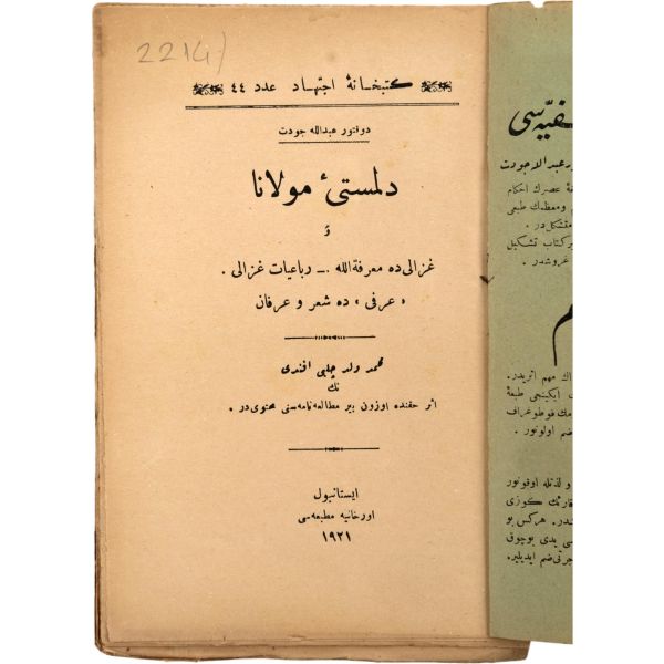 Beş Hececi şair Yusuf Ziya Ortaç´ın ikinci şiir kitabı... Ziya Gökalp ve Ömer Seyfettin´le birlikte Milli Edebiyat hareketinin ve Genç Kalemler dergisinin kurucularından olan Ali Canip´e (Yöntem) "İstiklal Heyet-i Tahririye Müdürü Ali Canip Beyefendi´ye" ithafıyla imzalanmıştır.