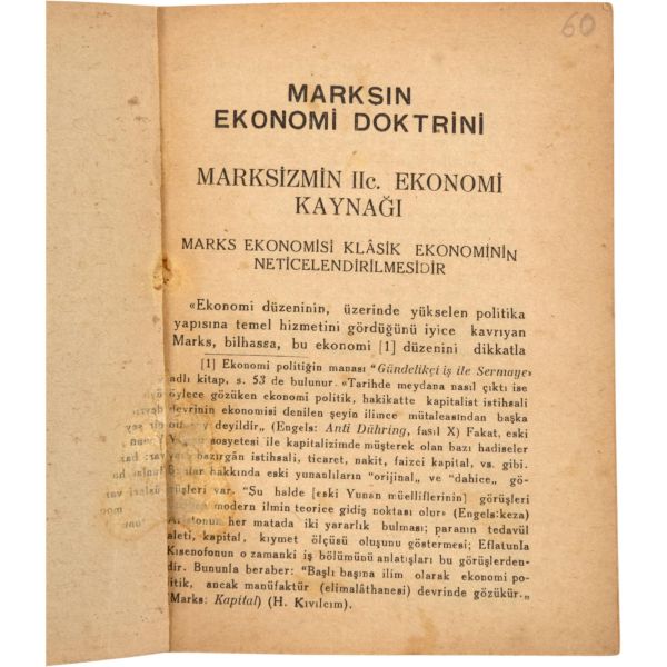 KAPİTAL´DAN HÜLÂSALAR, Birinci fasikül, Kerim Sadi, Bozkurt Matbaası, İstanbul, 1936, 28 sayfa, 14x19 cm,