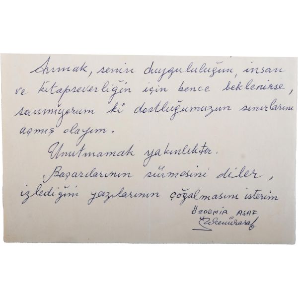 Ancak, senin duygululuğunu, insan ve kitapseverliğim için bence beklenirse, sanmıyorum ki dostluğumuzun sınırlarını aşmış olayım.