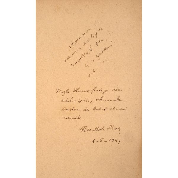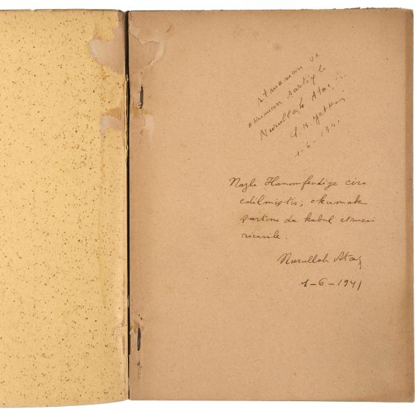 Suut Kemal Yetkin dünyadaki belli başlı edebi akımları konu alan eserini "Atmaman ve okuman şartiyle Nurullah Ataç´a" ithafıyla 1 Haziran 1941 tarihinde Nurullah Ataç´a hediye etmiş; Nurullah Ataç´da aynı gün, Yetkin´in kaleme aldığı ithafın altına "Nazlı Hanımefendiye ciro edilmiştir; okumak şartını da kabul etmesi ricasile" notunu düşüp imzalayarak eseri Nazlı Hanımefendi´ye hediye etmiştir.