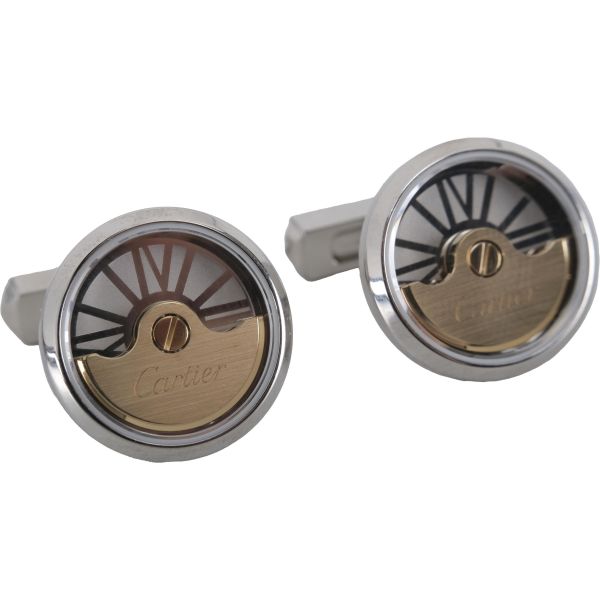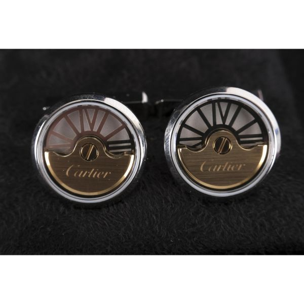 18 ayar altından ve paladyum kaplamalı 925 ayar gümüşten yapılmış salınımlı ağırlıklı kol düğmeleri, çap 15 mm...