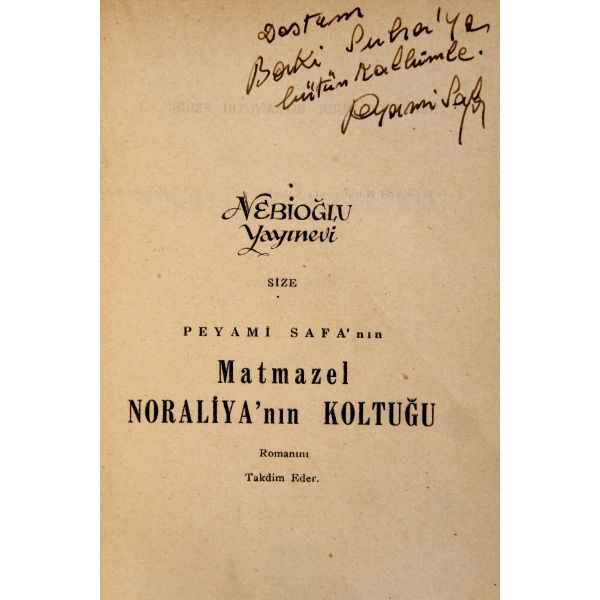 Cumhuriyet dönemi Türk romancılığının en önemli isimlerinden Peyami Safa´nın metafizik alanlara yöneldiği, en tanınmış romanlarından birinin ilk baskısı... Şair Baki Süha Edipoğlu için "Dostum Baki Suha´ya bütün kalbimle" ithafıyla imzalanmıştır.