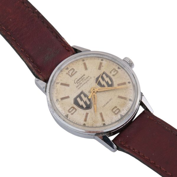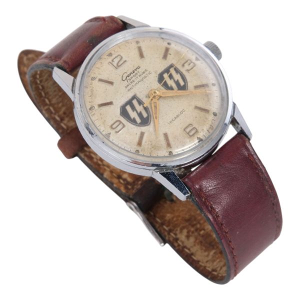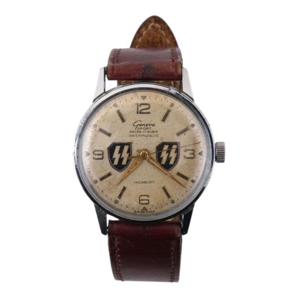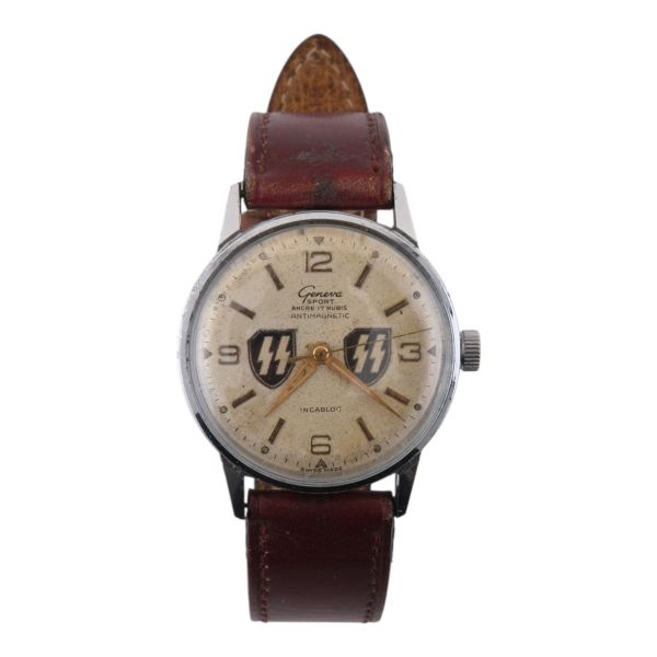 Geneva firması tarafından 2. Dünya Savaşı döneminde SS subayları için üretilen, kadranında SS amblemi işlenmiş oldukça nadir kol saati.