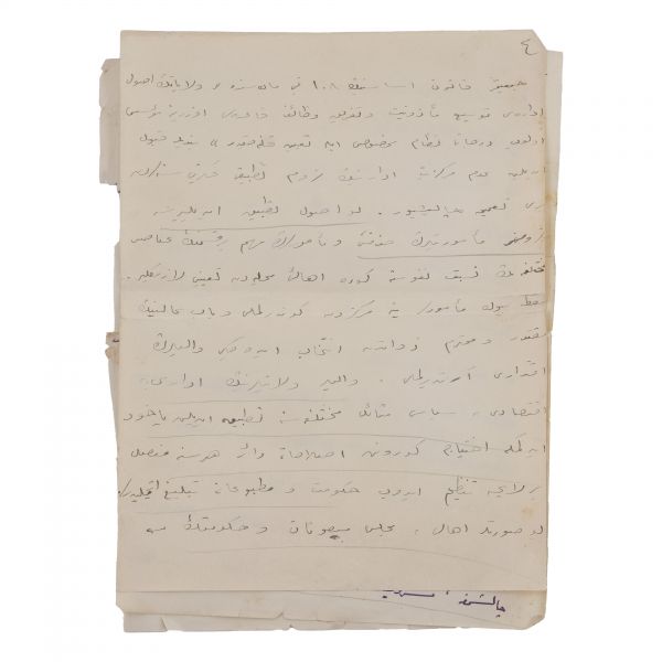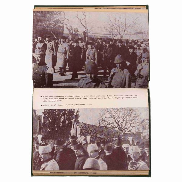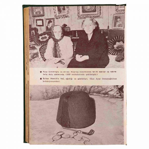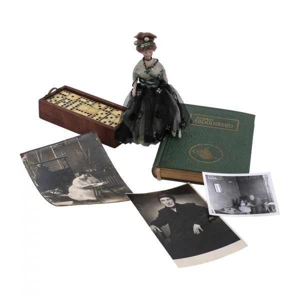 1886 yılında nikahlanacağı Sultan II. Abdülhamid´i ölümüne kadar yalnız bırakmayan Müşfika Kadınefendi, Ayşe Sultan´ın annesidir. Sultan II. Abdülhamid´i ne saltanatının çalkantılı son demlerinde, ne de 31 Mart Vakası sonrası tahttan indirilip sürgün edileceği Selanik´te yalnız bırakmamıştır. 1912´de Balkan Harbi´nin başlamasıyla güvenlik sebebiyle yeniden İstanbul´a, Beylerbeyi Sarayı´na getirilen devrik padişaha buradaki son yıllarında da eşlik eden Müşfika Kadınefendi, sadakatle bağlandığı eşinin vefatının ardından saraydan ayrılarak mütevazı bir yaşam sürmüştür. 1924 yılındaki Hanedan sürgününde cariye kökenli olduğu için sürgün dışında tutulan Müşfika Kadınefendi, hanedan mensubu kızı Ayşe Sultan´ın Avrupa´ya sürgün edilmesine bağrına taş basarak şahitlik etmiştir... Lot içeriği: 1) Müşfika Kadınefendi tarafından Osmanlıca "Oğlum Cemil Bey´e yadigârımdır." ithafıyla imzalanmış, yine Osmanlıca "Müşfika" mühürlü BABAM ABDÜLHAMİD kitabı (yazar: Ayşe Osmanoğlu). 2) Müşfika Kadınefendi´nin vefatından bir sene önce (1960) çektirip, arka yüzüne "Yadigâr" notu düşerek imzaladığı bir stüdyo portre fotoğrafı (11x16,5 cm). 3) Müşfika Kadınefendi´nin küçük bir kız çocuğuyla görüldüğü enstantane fotoğraf (10,5x7,5 cm). 4) Müşfika Kadınefendi ile Ayşe Osmanoğlu´nun sürgün yıllarında oynadıkları domino takımı (orijinal ahşap kutusunda; 16,5x7,5x3,5 cm). 5) Ayşe Osmanoğlu´nun gençlik yıllarında çekilmiş stüdyo fotoğrafı. 6) Ayşe Osmanoğlu´nun sürgün yıllarında kendi elleriyle yaptığı oyuncak bebek (18x6,5 cm).