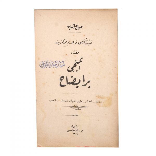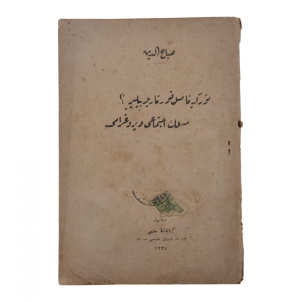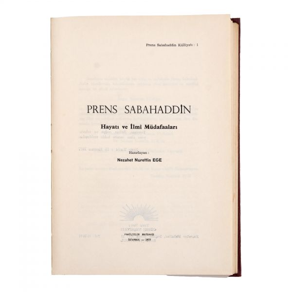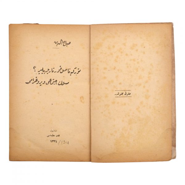 1. Teşebbüs-i Şahsî ve Tevsi-i Mezuniyet Hakkında Bir İzah, M. Sabahaddin, Matbaa-i Kütübhane-i Cihan, 20 sayfa, 14x20 cm...