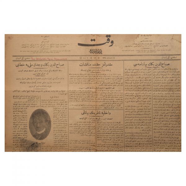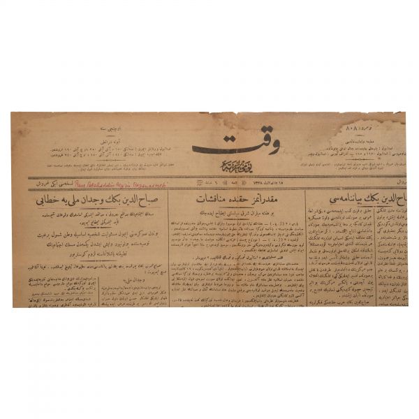 8. "Sabahattin Bey´in Vicdan-ı Milliye Hitabı" manşetli Vakit gazetesinin 9 Şubat 1920 tarihli nüshası