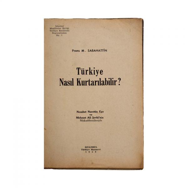 6. Türkiye Nasıl Kurtarılabilir?, Prens M. Sabahattin, 1950, Türkiye Yayınevi, 61 sayfa, 14x21 cm...