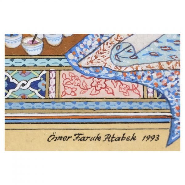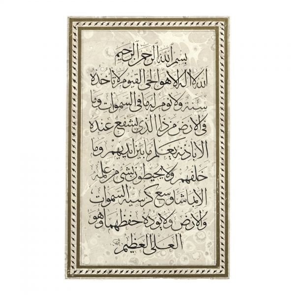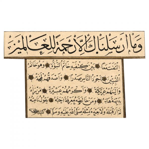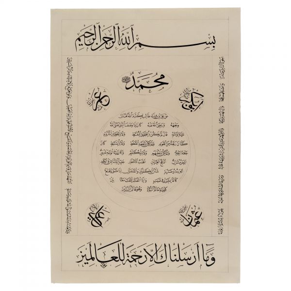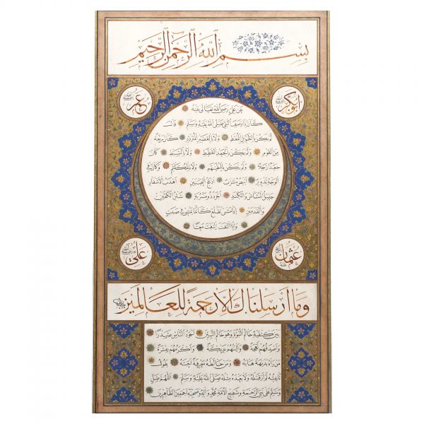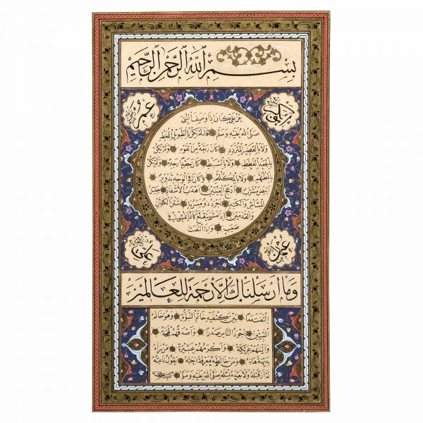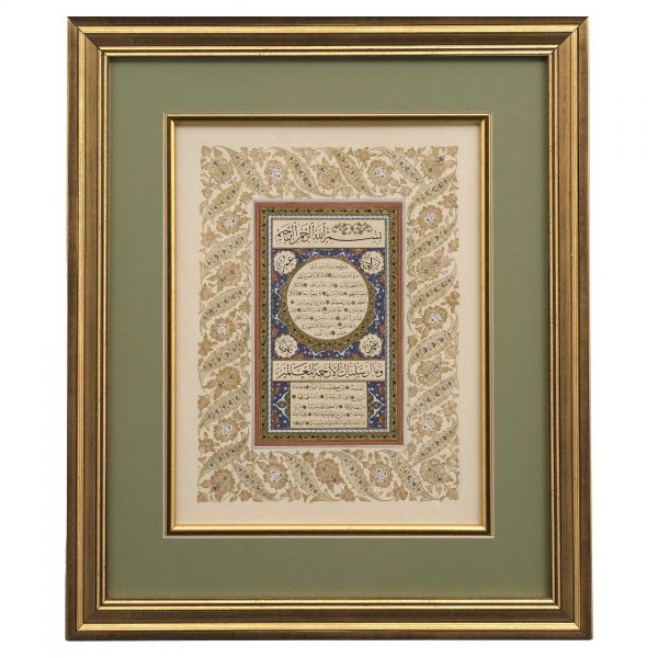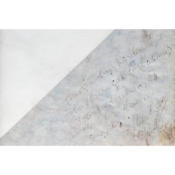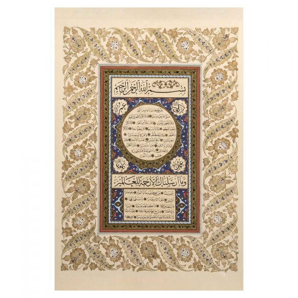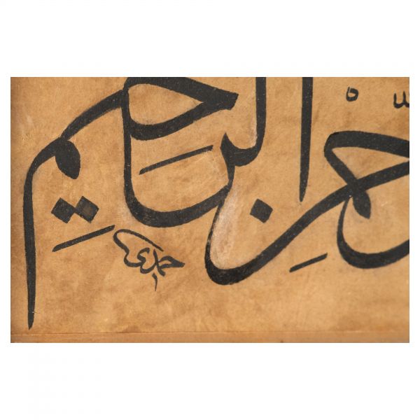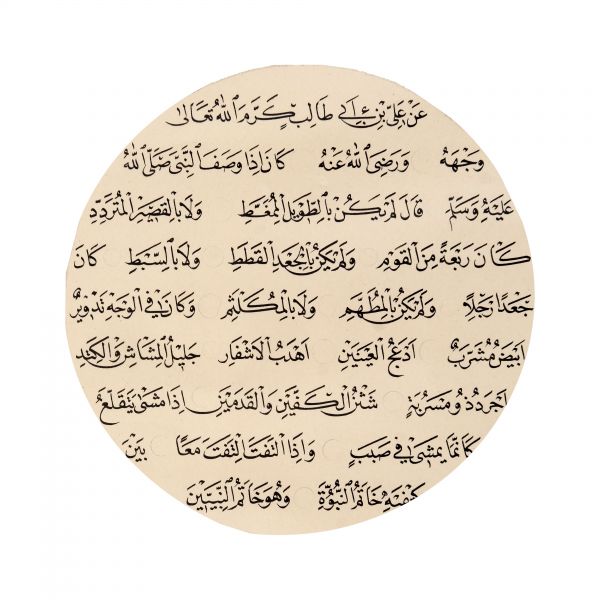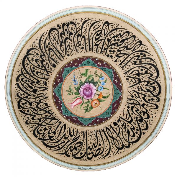 Yazıda Arapça olarak "Şeref bin Kâmil el-marûf bi-Reîsi´l-Hattâtîn, harrarahû el-fakîr el-hakîr Şeref Akdik" ve arkasında tekrar eden benzer cümleler yazılıdır.