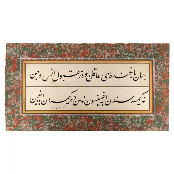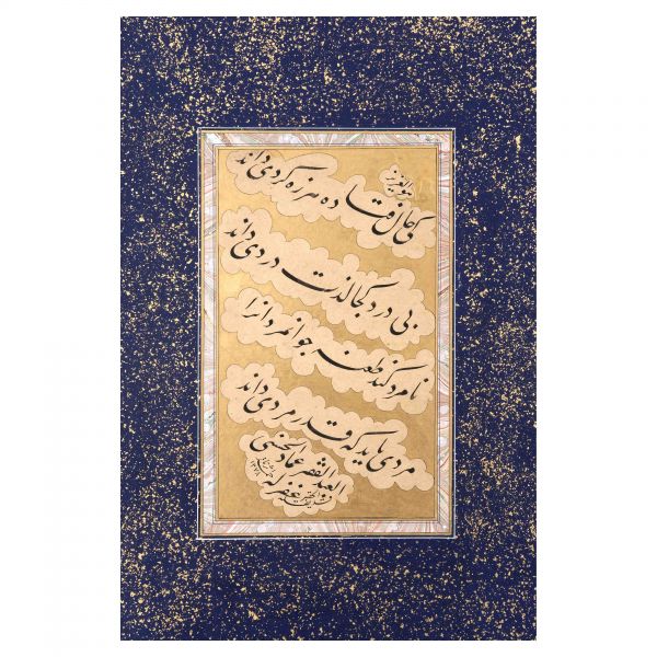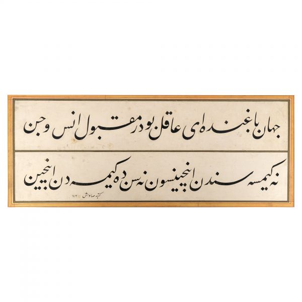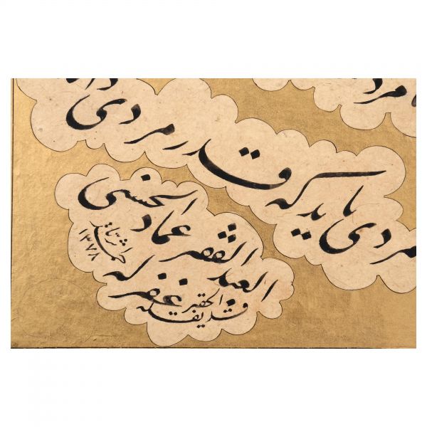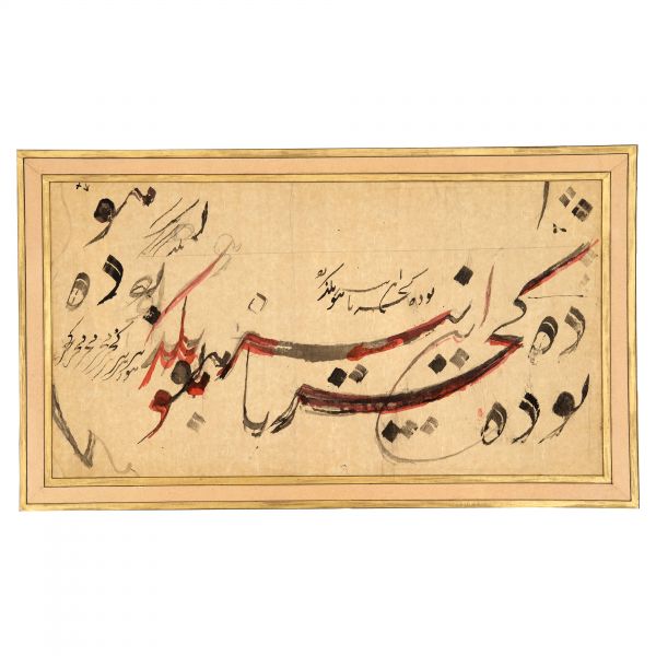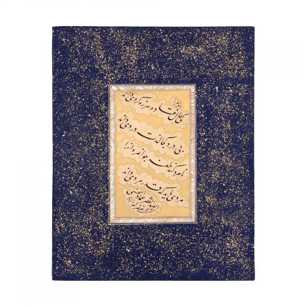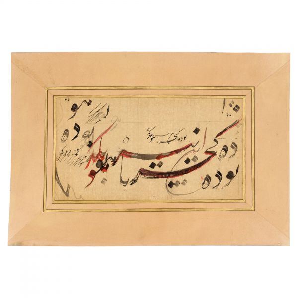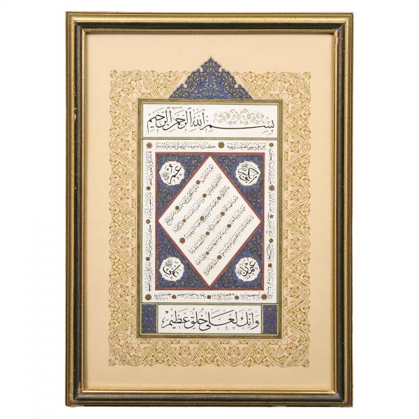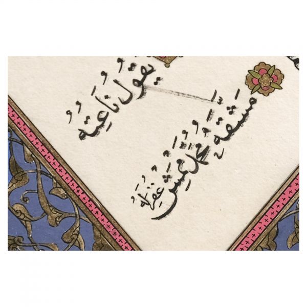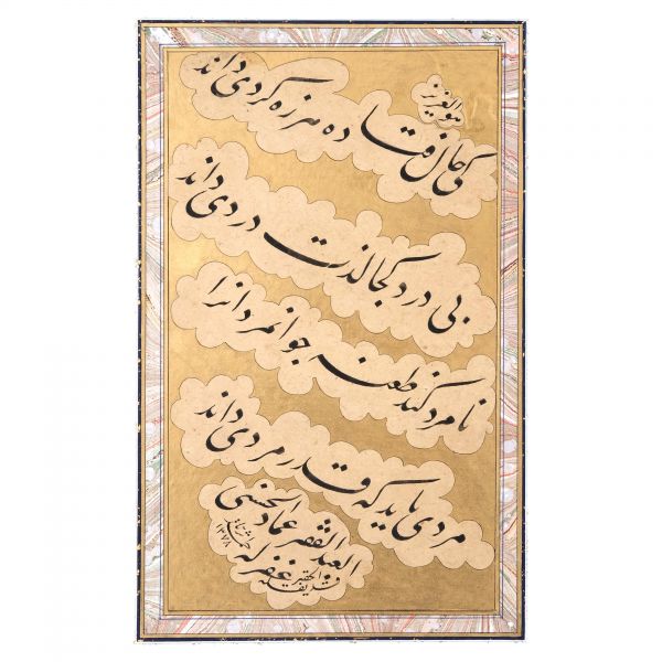 Eser İmad el-Hasenî´nin meşhur mail kıtasının Hasan Rıza Efendi´nin oğlu Ahmed Süreyya Efendi tarafından takliden yazılan bir örneğidir. Talik meşk edenler icazet safhasına geldiklerinde genellikle İmad el-Hasenî´nin bu veya benzer kıtalarını takliden yazmaktadırlar. Eser bu geleneğin güzel bir örneğidir.
