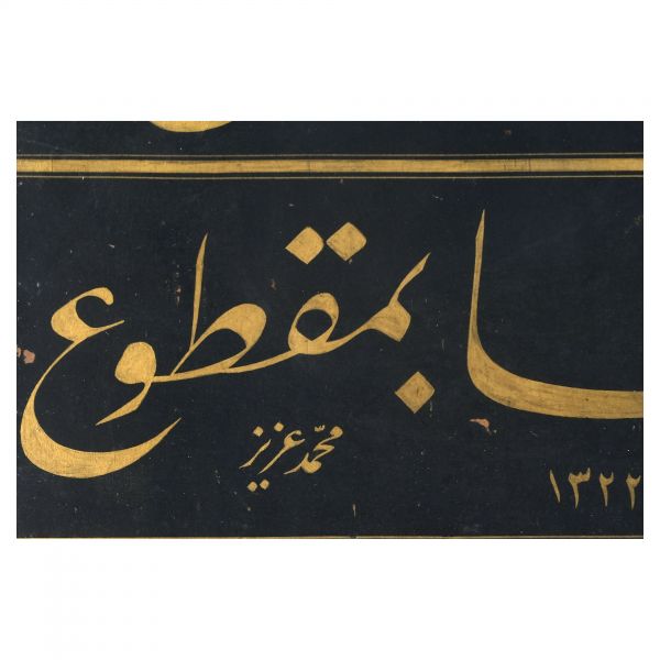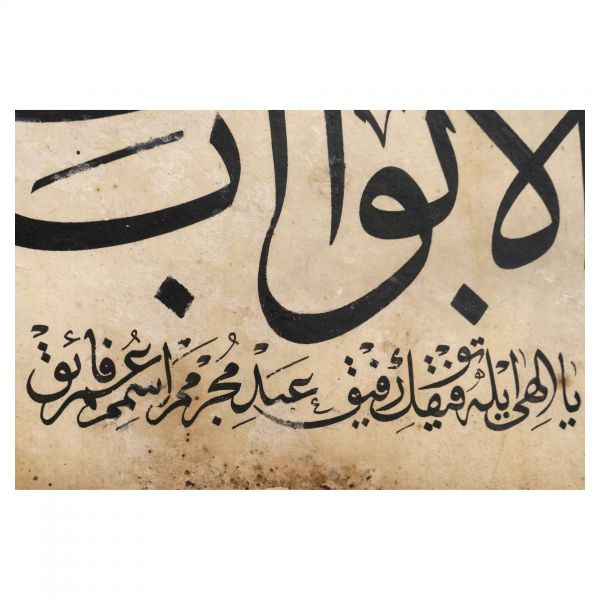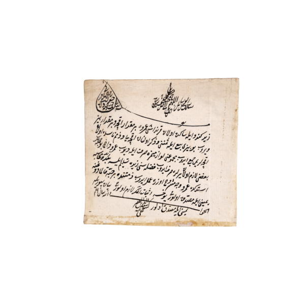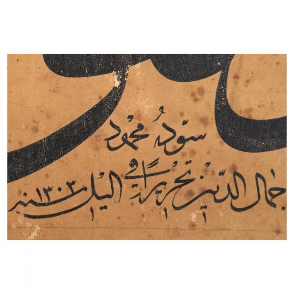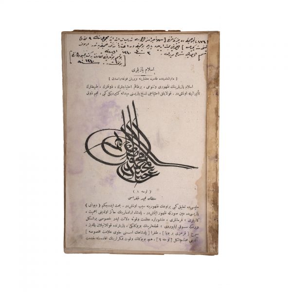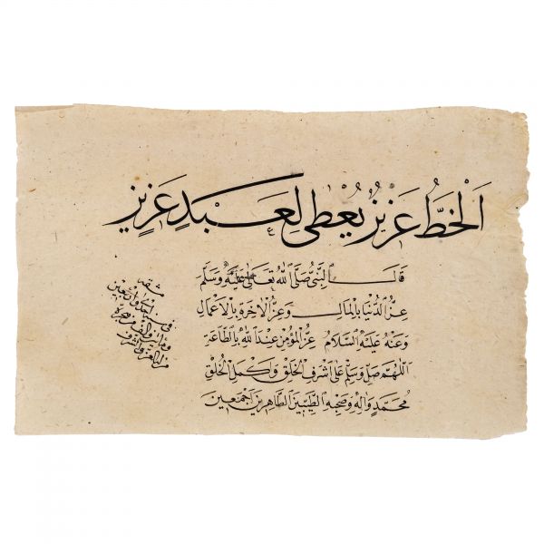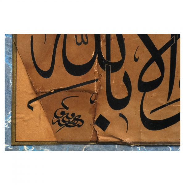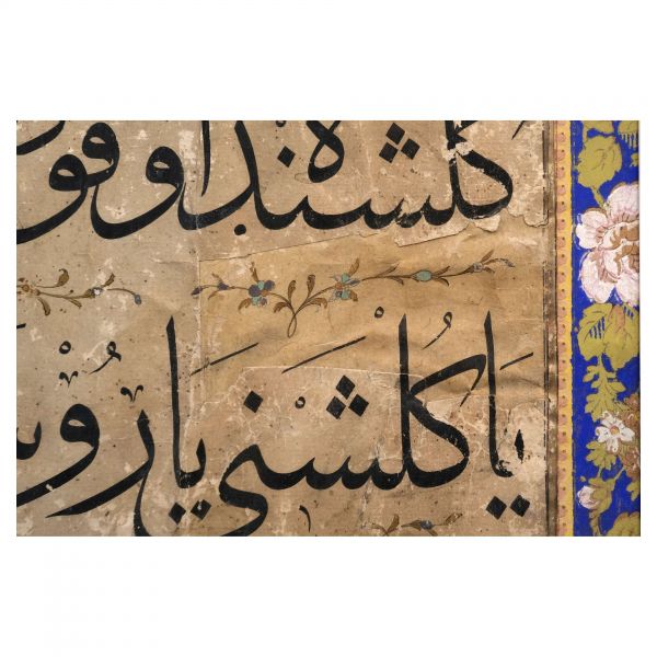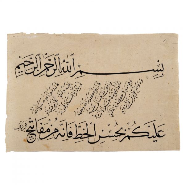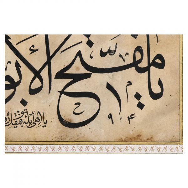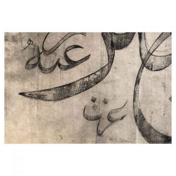 * Yazının baş kısmı, mahir bir hattat tarafından sonradan tamamlanmış, diğer kısımlar da restore edilmiştir. Kağıdın altında ve sol tarafında kırılma izleri vardır. Fotoğrafları inceleyerek pey veriniz.