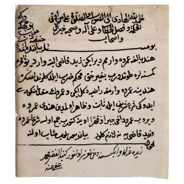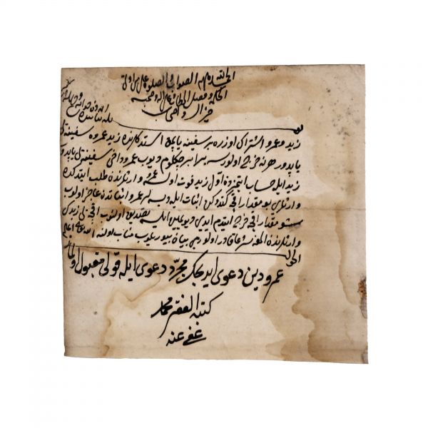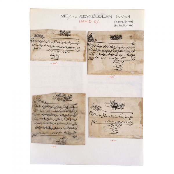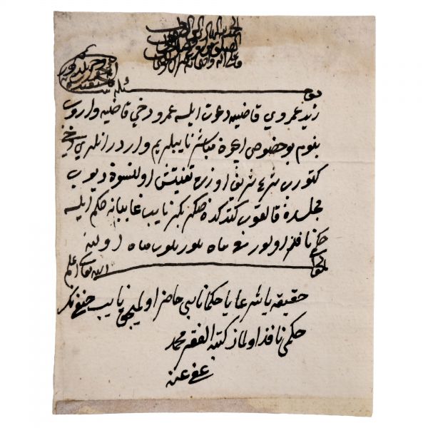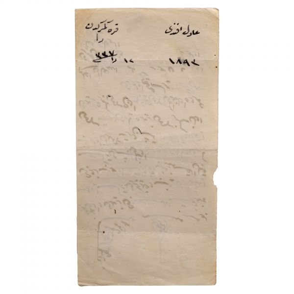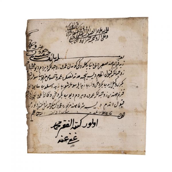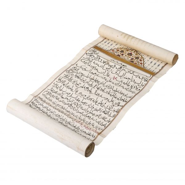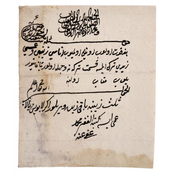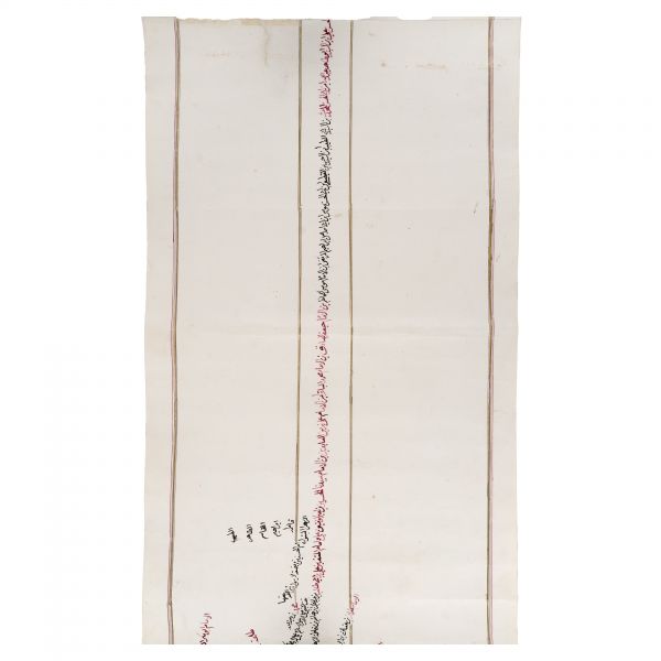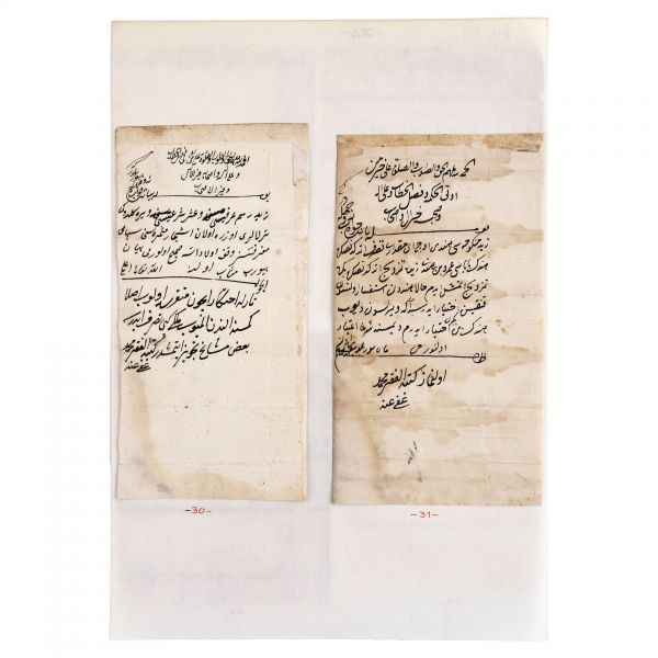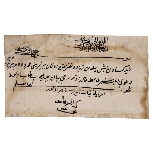 * Yazının baş kısmı, mahir bir hattat tarafından sonradan tamamlanmış, diğer kısımlar da restore edilmiştir. Kağıdın altında ve sol tarafında kırılma izleri vardır. Fotoğrafları inceleyerek pey veriniz.