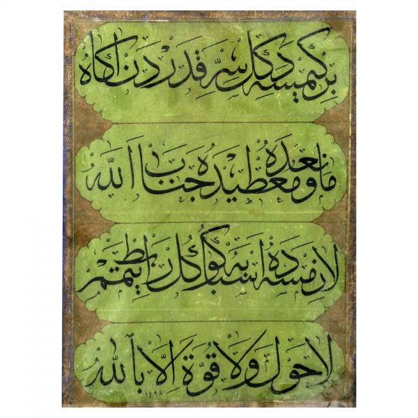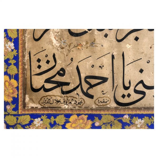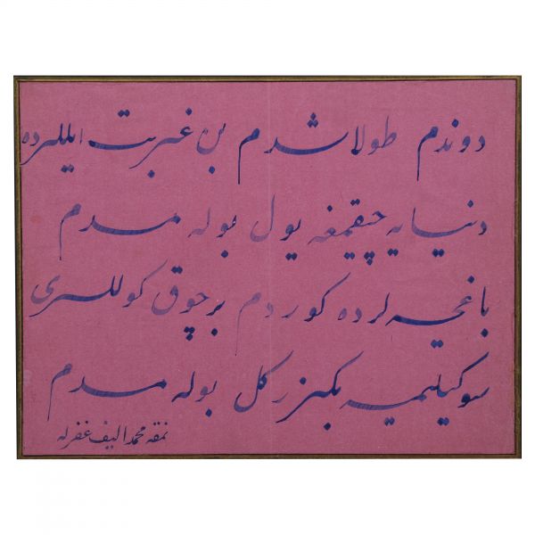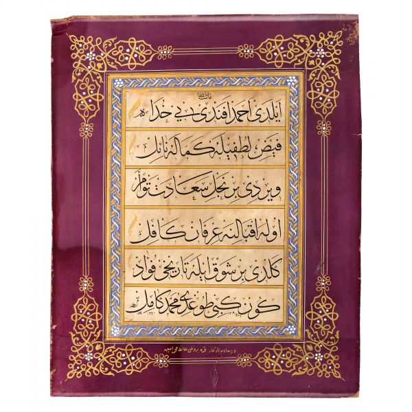 *kondisyon notu: Eserin genel olarak kondisyonu iyi olmakla beraber üst orta kısmında elif harfinin sonuna dahil olan küçük bir kağıt tamiri vardır. görselleri inceleyerek pey veriniz.