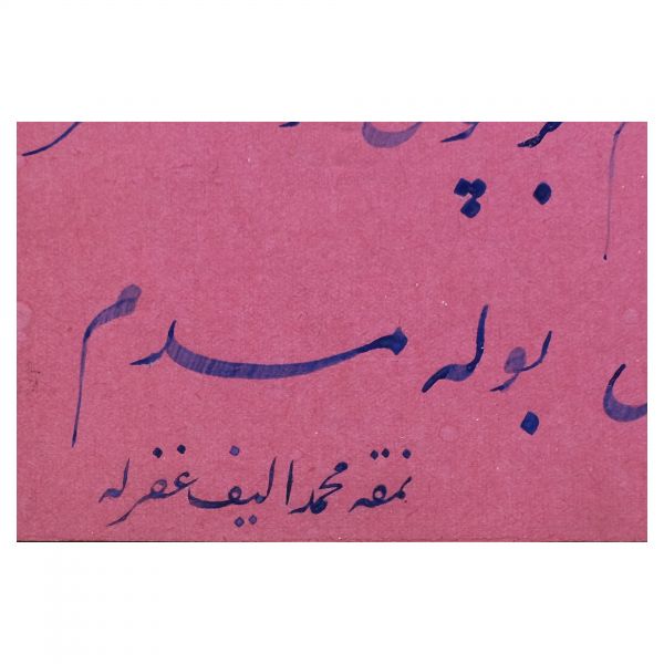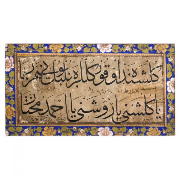 Okunuşu: "Gülşende okur güllere bülbül bunu her bar / Yâ gülşeni, yâ rûşeni, yâ Ahmed-i Muhtar."