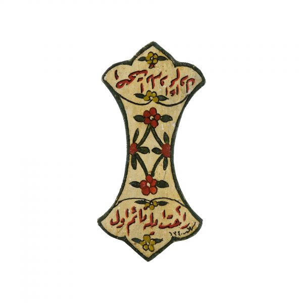 Baş ve ayak kısımlarında 1-2-3-4 şeklinde numaralandırılmış olarak "Sıhhat ile dâim ol, Rahat ile nâim ol, İsmet ile dâim ol, Görme cevr-i feleği" dörtlüğü yazılıdır.