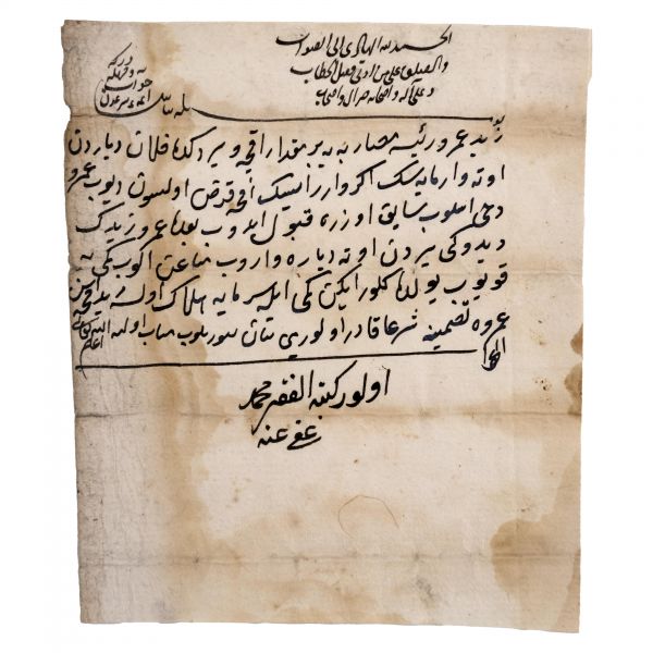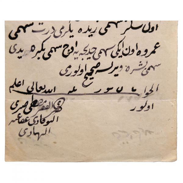 *Kâğıtta yer yer dökülmeler vardır. 2. satırın başına eski dönem kâğıt tamiri ve yazı tamamlama mevcuttur. Görselleri inceleyerek pey veriniz.
